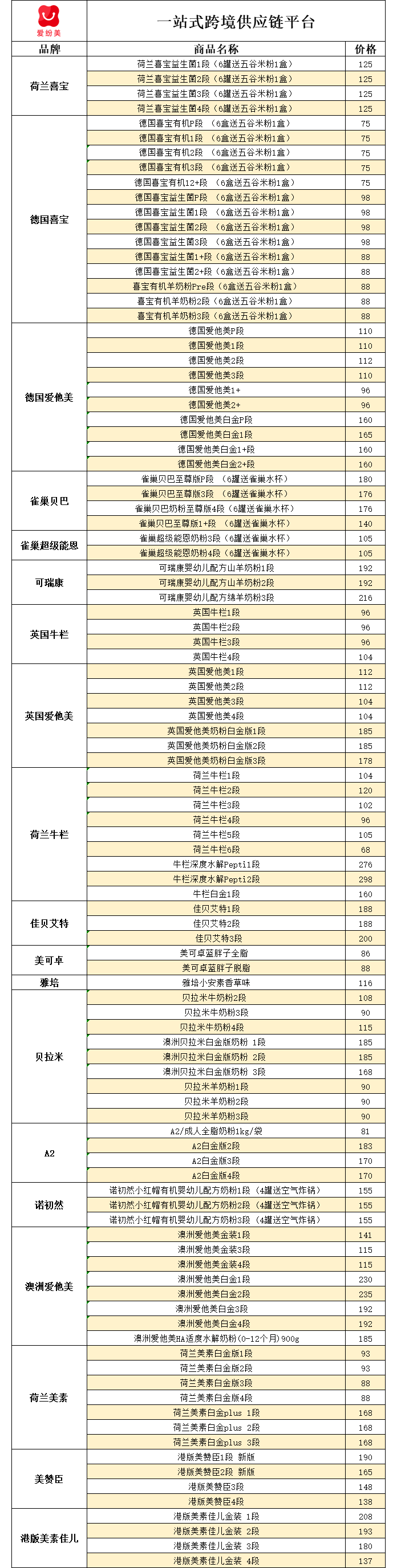 【婴儿奶粉】9月13日汇总表