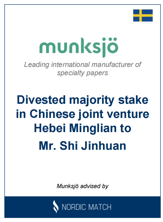 我们很荣幸在此次交易中为明士克提供财务顾问服务,协助其将河北名联多数股权出售给石金环先生。此次交易体现了明士克专注核心业务的战略,同时确保邢台工厂在本地合作伙伴的支持下持续稳健发展。很高兴在整个交易过程中为双方提供支持,助力顺利完成这笔在中国市场的重要交易。