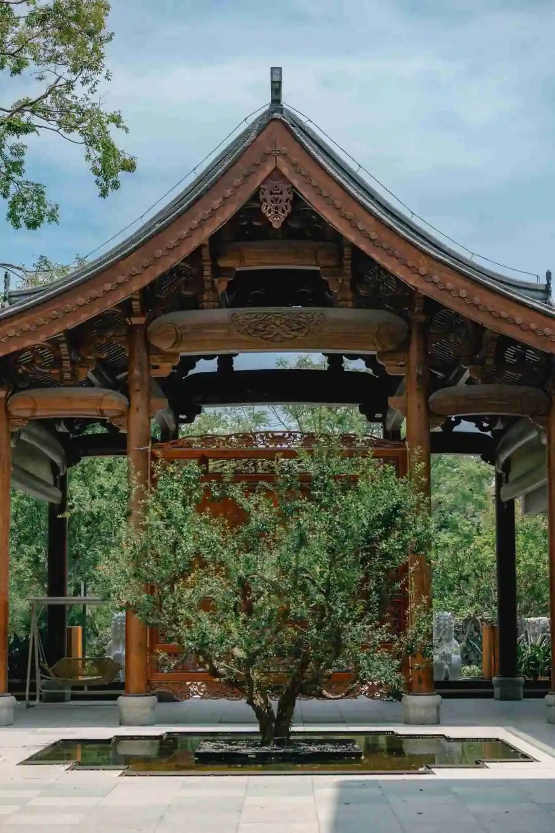 田园雅舍度假村由成都雅舍农业开发有限公司开发打造,起步期包括200亩的文化展示区和2000多平方米的木雕文化艺术交流酒店,目前已基本呈现。