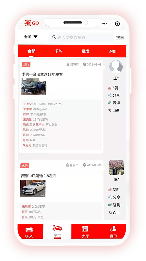 而收GO则避开了这些问题,严抓真车源,保障车源唯一性,新鲜有效;城市覆盖范围广泛,车源丰富;搜索简单转发方便,而且费用还很便宜;服务多样性,涵盖二手车交易全流程,买卖更省心;同行辅助帮卖,快速交易高效对接,还拓展了人脉。