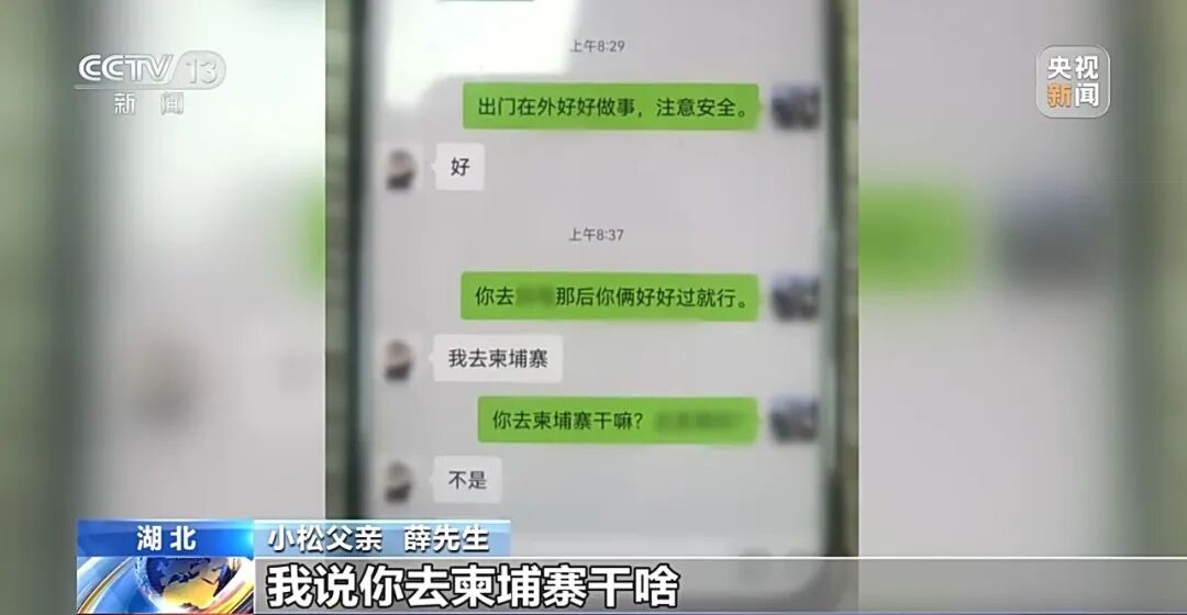 小松的回复让薛先生心里一紧。随后,小松告诉父亲,自己去柬埔寨的工作很正规,待遇也不错,他希望通过自己的努力出人头地。