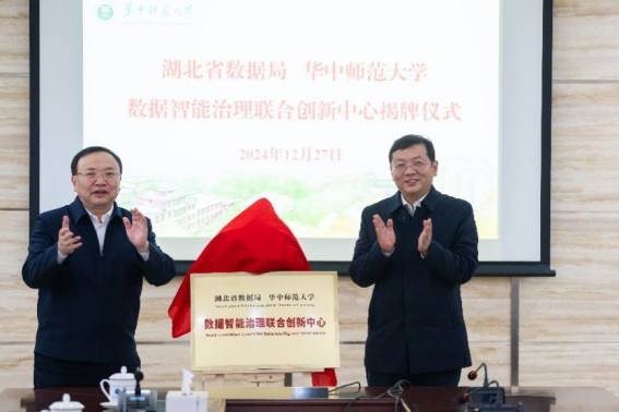 12月27日上午,湖北省数据局—华中师范大学数据智能治理联合创新中心揭牌仪式在华中师范大学举行。湖北省数据局党组书记、局长周森锋、华中师范大学党委书记夏立新、党委副书记陈迪明出席揭牌仪式,揭牌仪式由陈迪明主持,湖北省数据局、湖北省大数据中心、湖北省数据集团等相关单位负责人,华中师范大学校办、社科处、信息管理学院、计算机学院、经济与工商管理学院等院系负责同志和专家教授代表共同出席。