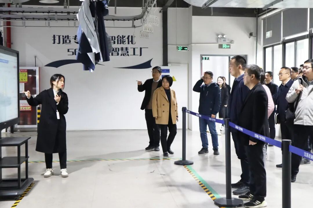 首先,薛松一行来到圣澜服饰的党建馆和智能车间实地观摩,了解该公司的发展历程和校服的智能化制作过程。圣澜服饰的校服智慧生产5G车间可以实现多种品类、多道工序的数智化生产。集成MES生产制造、WMS仓储管理、ERP资源计划等系统,赋能校服智能制造,打造从研发、生产到交付的全流程、可视化校服智能生产体系,聚焦产业大数据与数智化生产,实现校服产业“5G+工业互联网”新模式。2023年,圣澜服饰入选了“江苏省智能制造示范车间”“省级专精特新中小企业”。