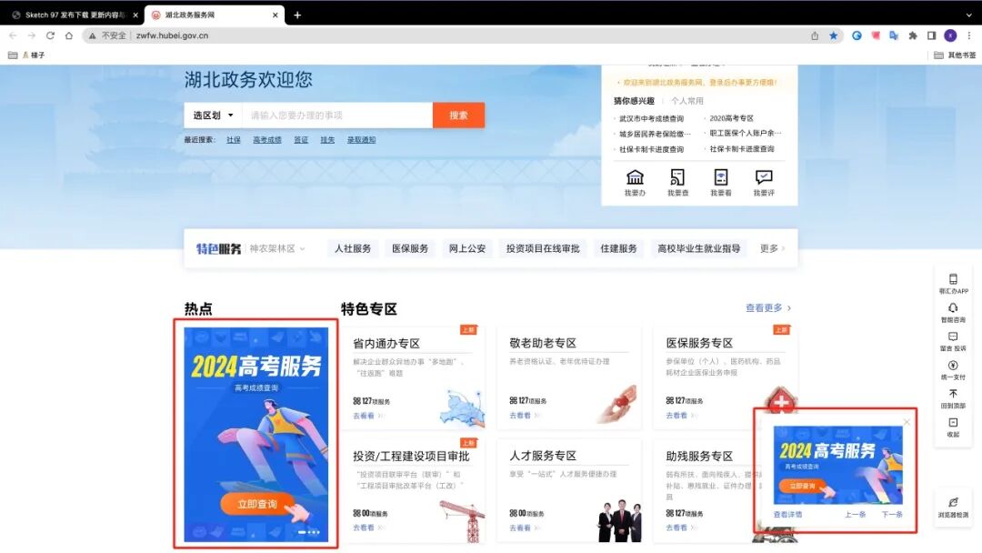 01.进入湖北政务服务网(http://zwfw.hubei.gov.cn/),点击页面左侧或右下角“2024高考服务”卡片,进入高考专区。