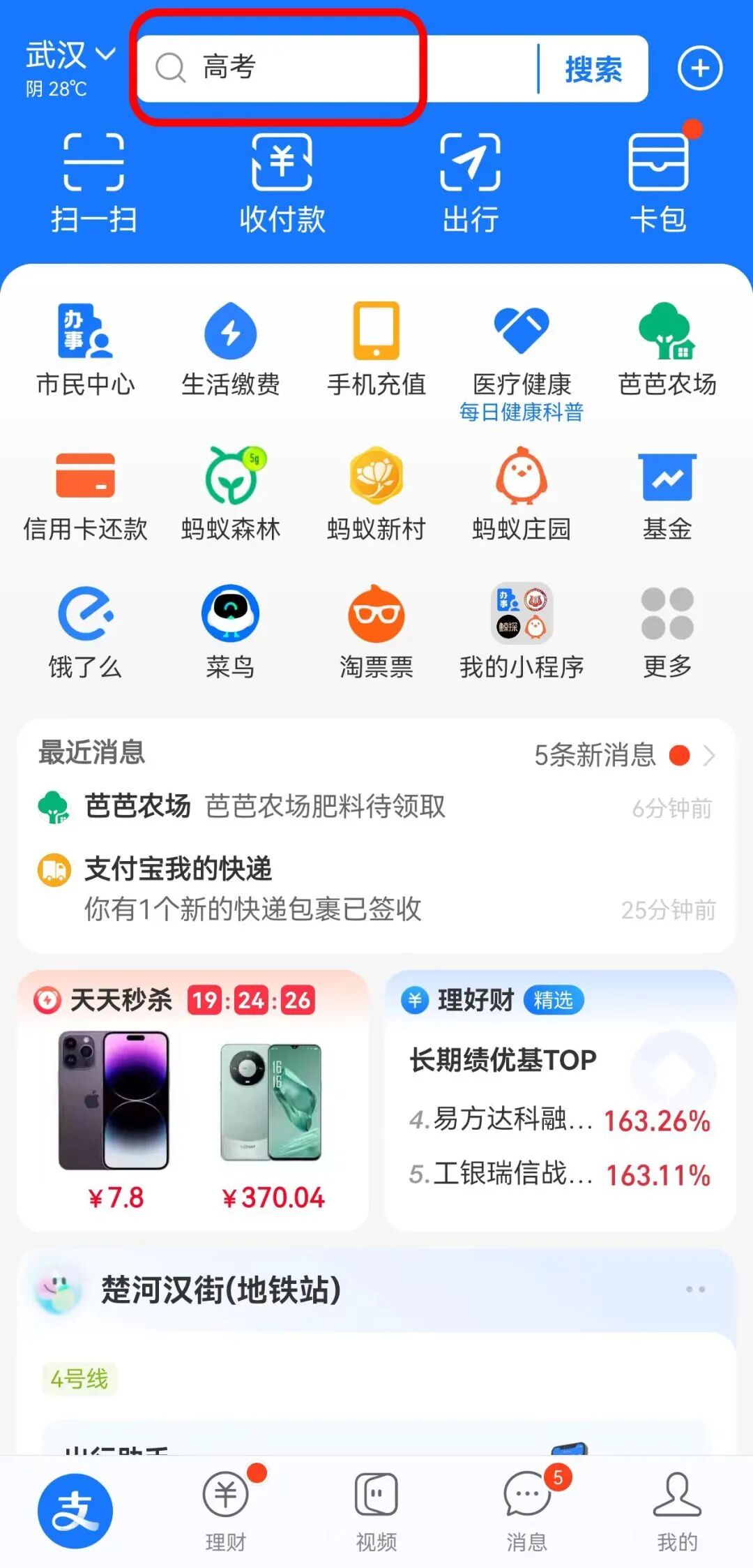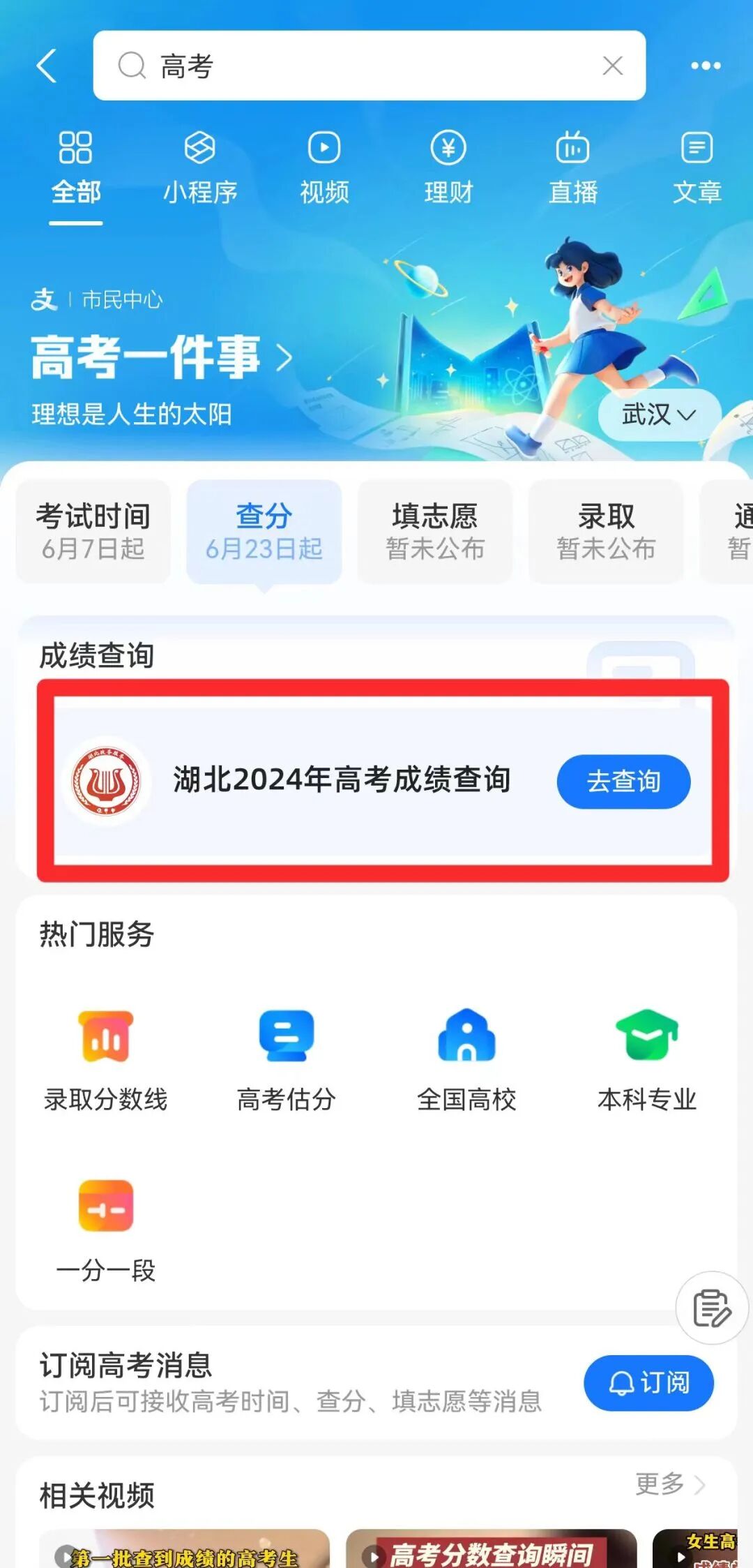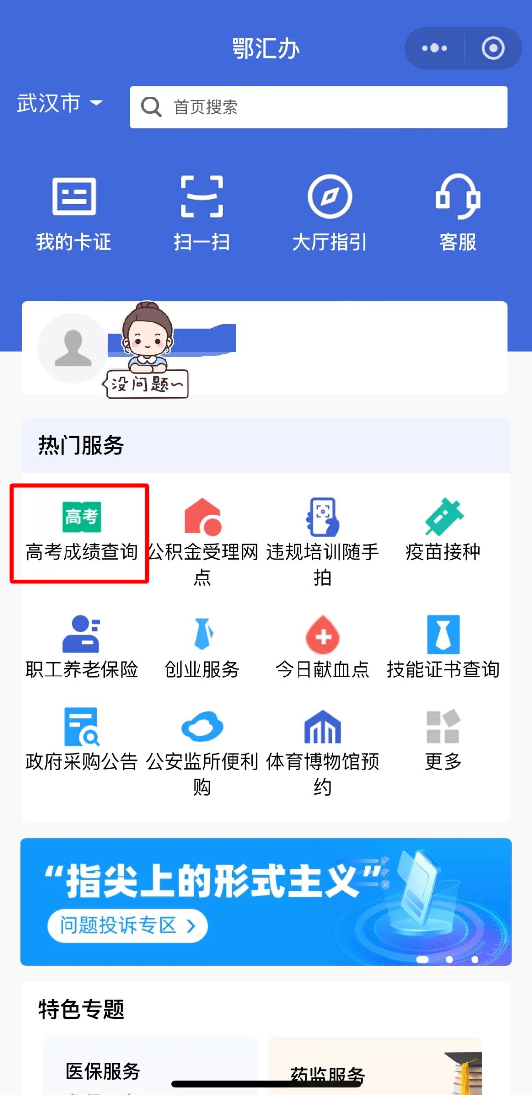 03.微信小程序:除了通过鄂汇办APP可以查询高考分数外,在微信搜索“鄂汇办”进入鄂汇办微信小程序,点击“高考成绩查询”也可以进行查分。