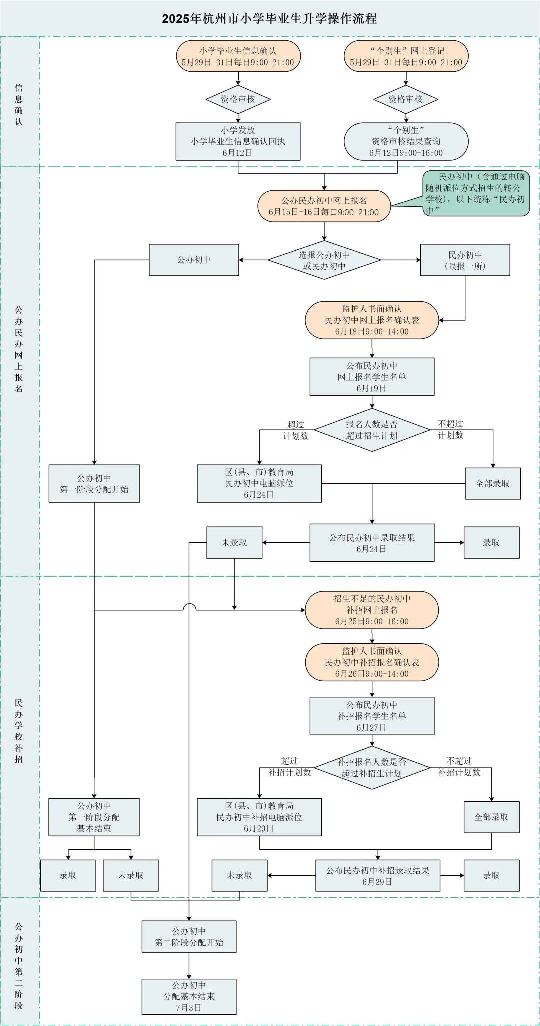 为方便家长了解今年小升初有关政策,市教育局编制了2025年杭州市小学毕业生升学操作问答,同时制作了3份操作指南(详见今日其他推文):1.主城区小学应届毕业生信息确认操作指南;2.萧山、余杭等五区三县(市)小学应届毕业生信息确认操作指南;3.小升初“个别生”信息网上登记操作指南。请家长们关注!(注:小升初网上报名和民办初中报名操作指南另发。)