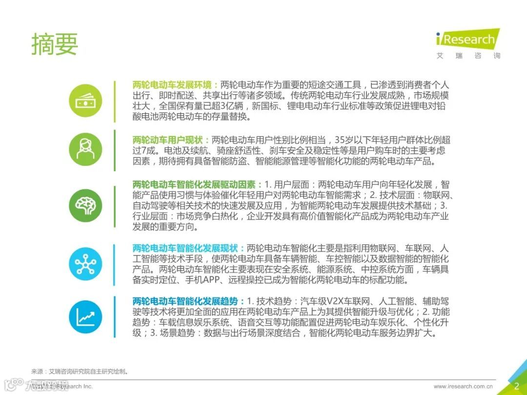 融致升汽车产业白皮书定义了智能化两轮电动车概念,回顾了两轮电动车发展历程,并探讨了当前政策、经济、技术、消费环境对两轮电动车产业的影响以及对智能化发展的促进作用,梳理了头部两轮电动车品牌智能化发展现状、特征以及优劣势,并对两轮电动车智能化发展趋势做出了预判,希望给与行业关注者、从业者以一定的启发。此外,依托于鲁大师的两轮电动车智能化分级标准,报告中对主流品牌的电动车产品进行了智能化等级评估。