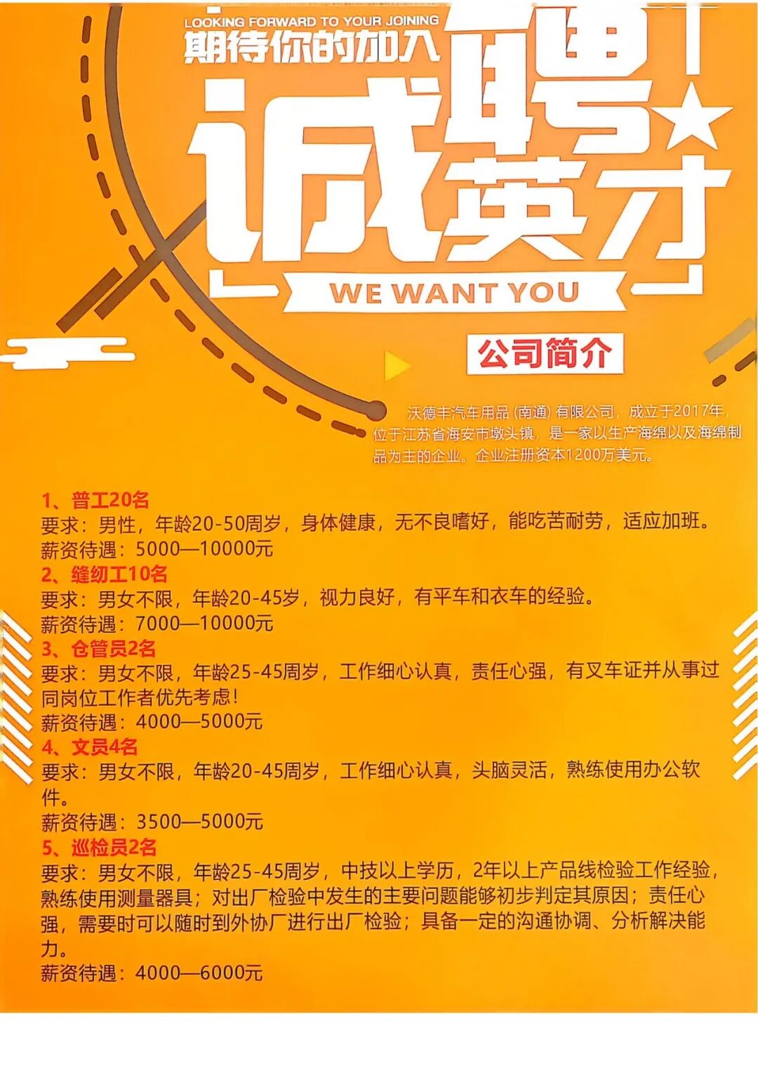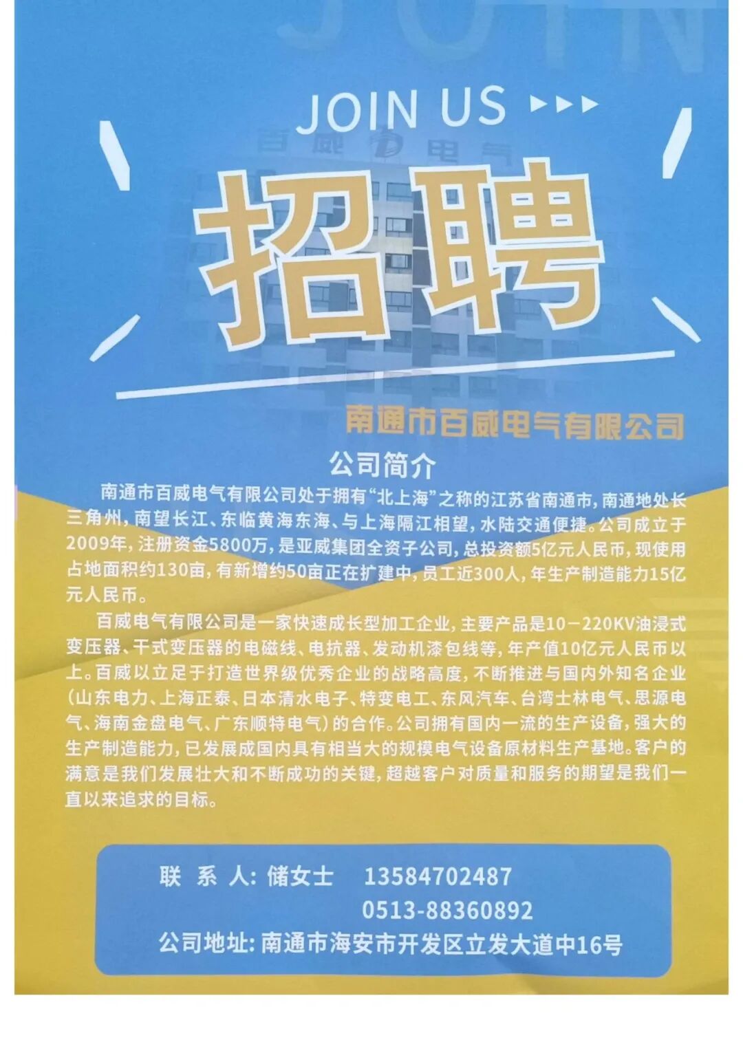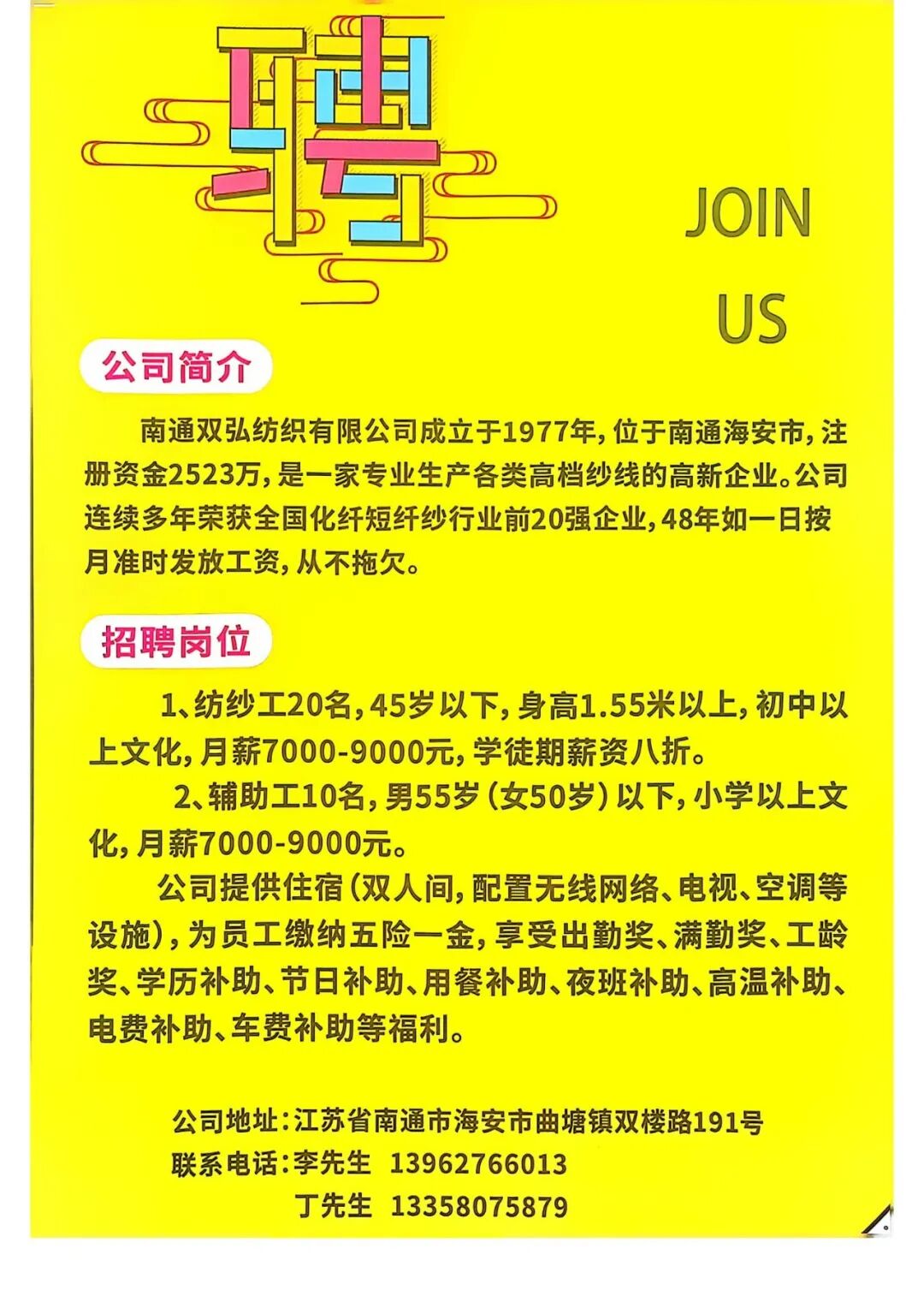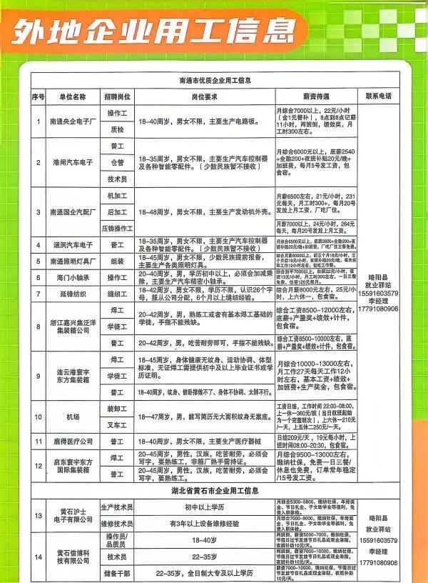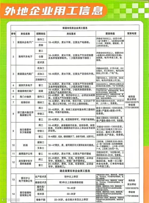 为认真贯彻落实国家和省、市关于稳定和促进就业决策部署,巩固脱贫攻坚成果有效衔接乡村振兴,促进脱贫劳动力转移就业,提高我县脱贫劳动力收入,特邀请南通、海安市14家企业及本地多家实力强、工资待遇好、环境条件优的企业开展现场用工招聘。