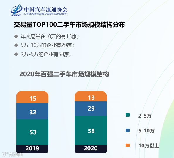 按照规模年交易量来看,年交易量在10万辆以上,这些上榜企业去年交易量下降14%左右。5-10万辆的区间,下降了7%左右。我觉得更多因素是疫情方面的影响。