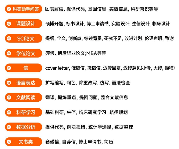 利用这一科研工具,我们可以在科研过程中的各个阶段获得有效且快速的帮助,无论是论文写作,还是文献阅读、课题设计、代码生成优化等,都能更好更快的提供灵感、框架或模板。加速科研效率300%不是问题!