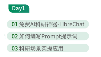 本次AI伴学营课程为期2天,从LibreChat的登录注册方法,到在科研工作中的使用方法与技巧,全都手把手教学!0基础跟着学就能快速上手操作!
