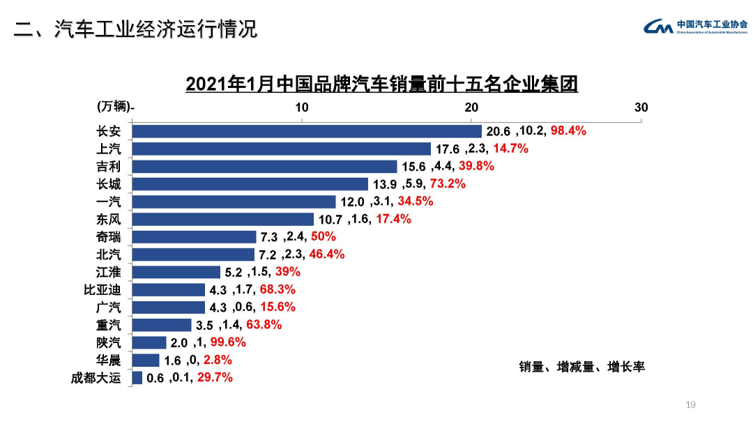 中汽协数据显示,1月国内汽车市场汽车产销分别完成238.8万辆和250.3万辆,同比分别增长34.6%和29.5%,环比分别下降15.9%和11.6%。虽实现同比大幅增长,却未能延续12月的较强的态势,主要受汽车芯片供应不足影响到汽车企业的生产节奏。