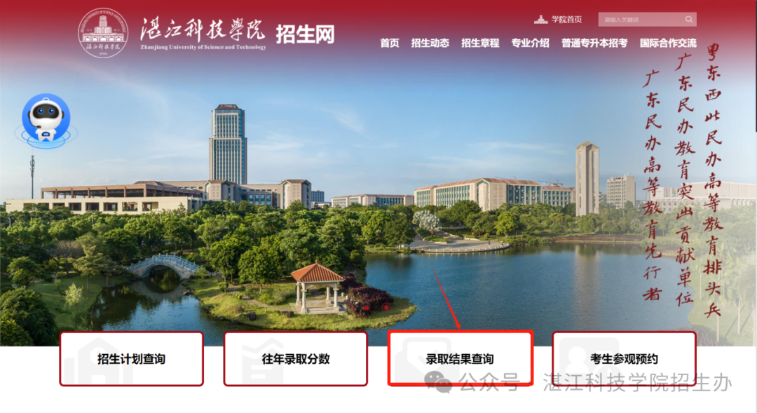 ① 关注“湛江科技学院招生办”微信公众号