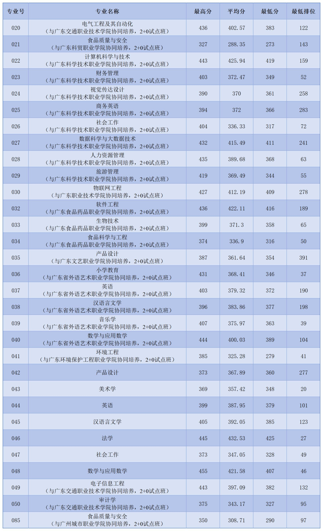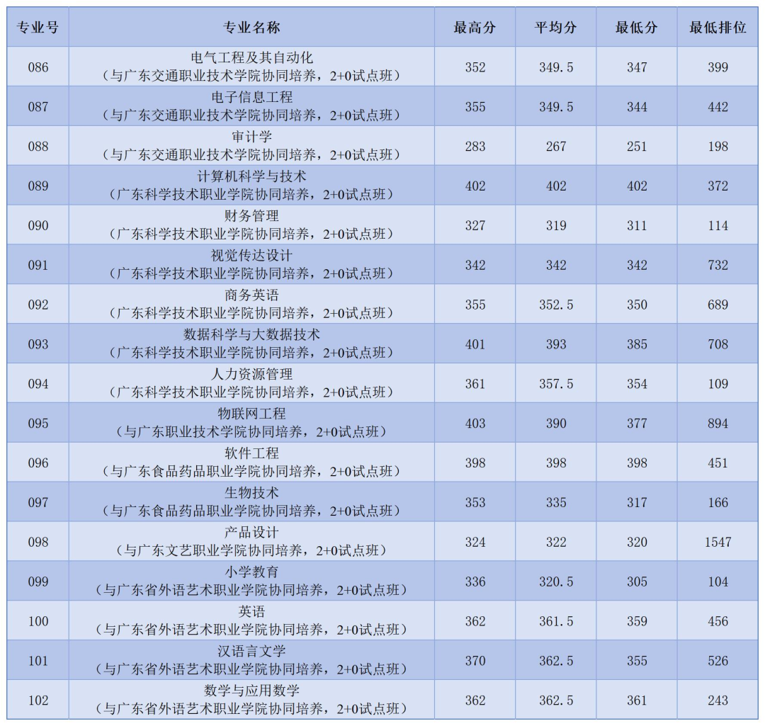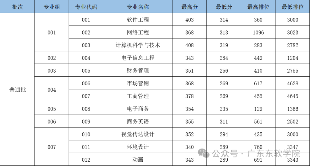 注:最终录取分数线和排位以广东省教育考试院公布为准。
