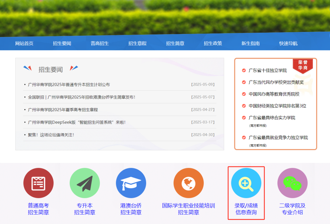 查询网站:广州华商学院招生信息网(http://zs.gdhsc.edu.cn/)