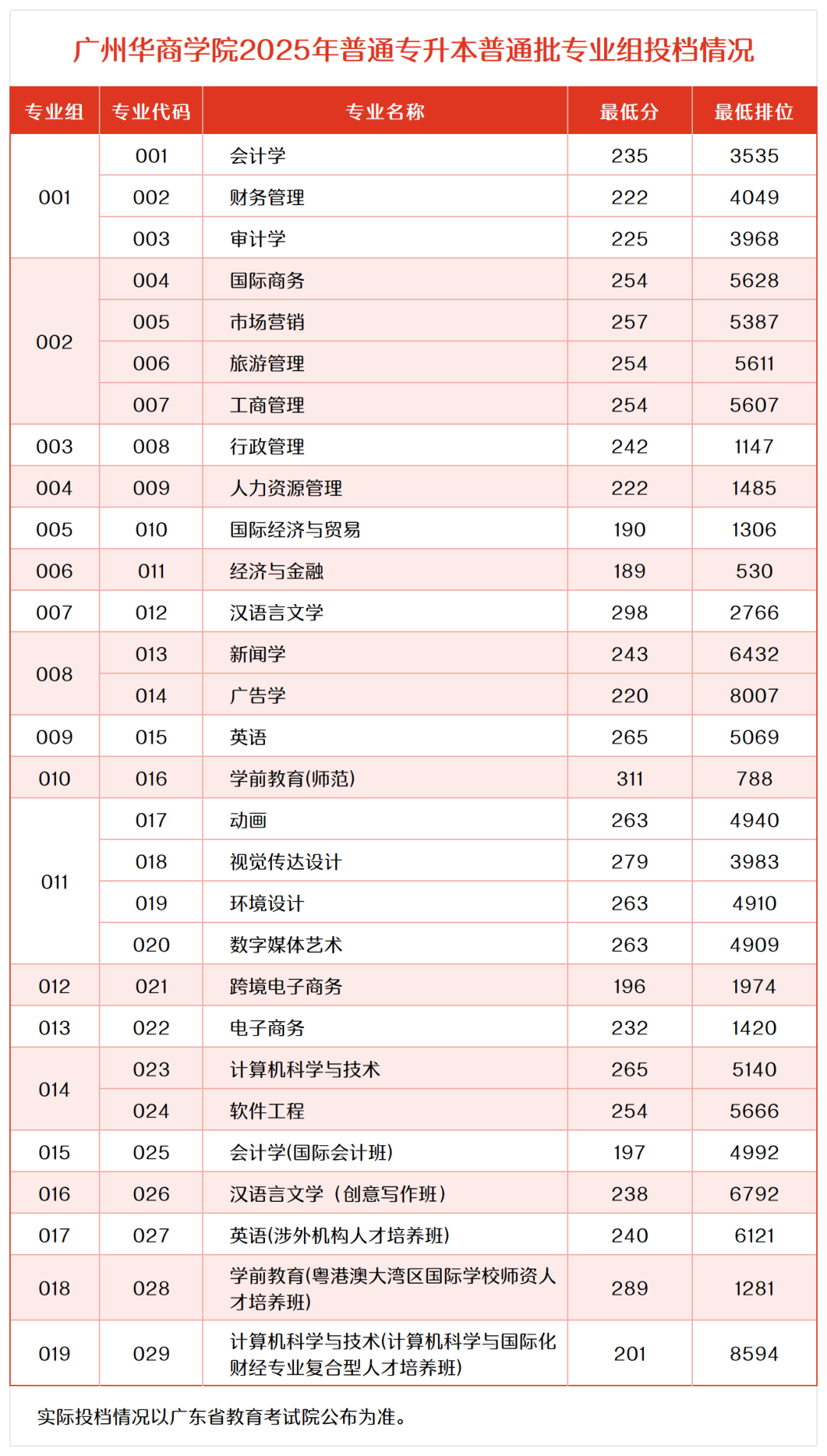 备注:最终录取结果请以广东省教育考试院公布为准。