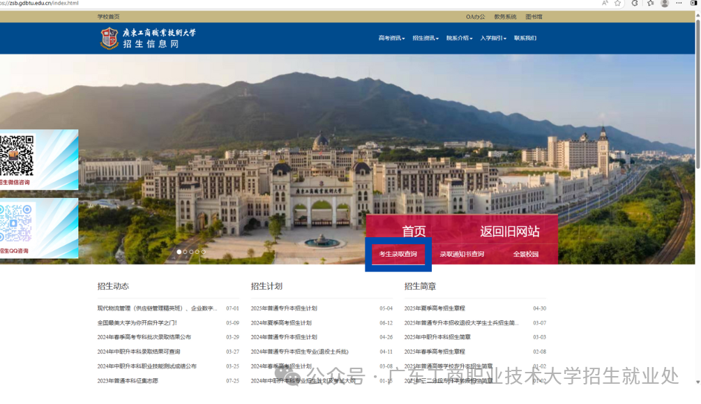进入广东工商职业技术大学招生信息网(http://zsb.gdbtu.edu.cn/),