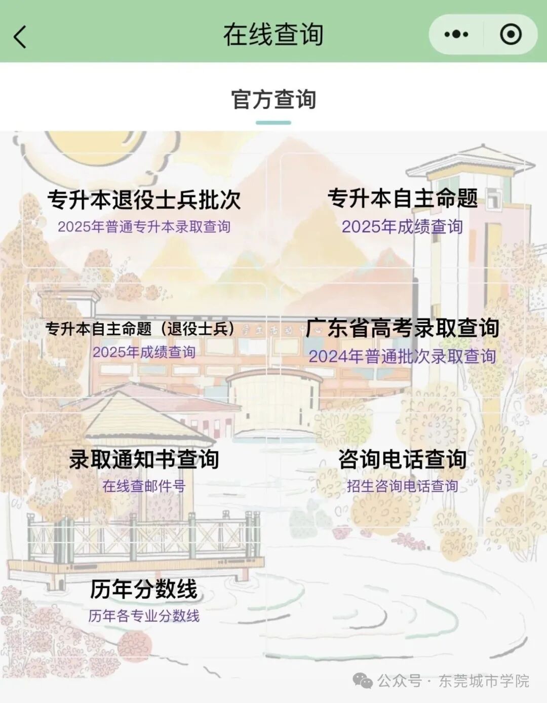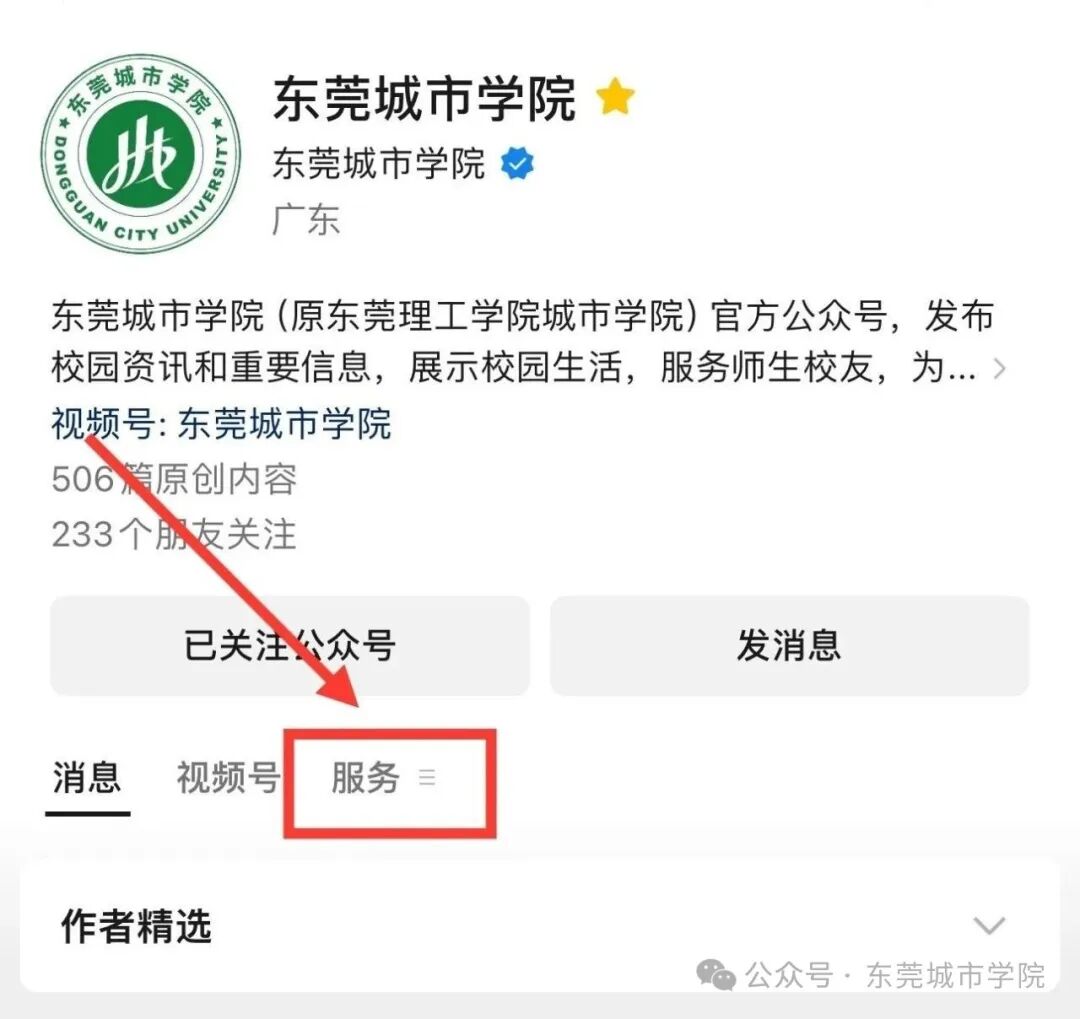 进入东莞城市学院公众号主页