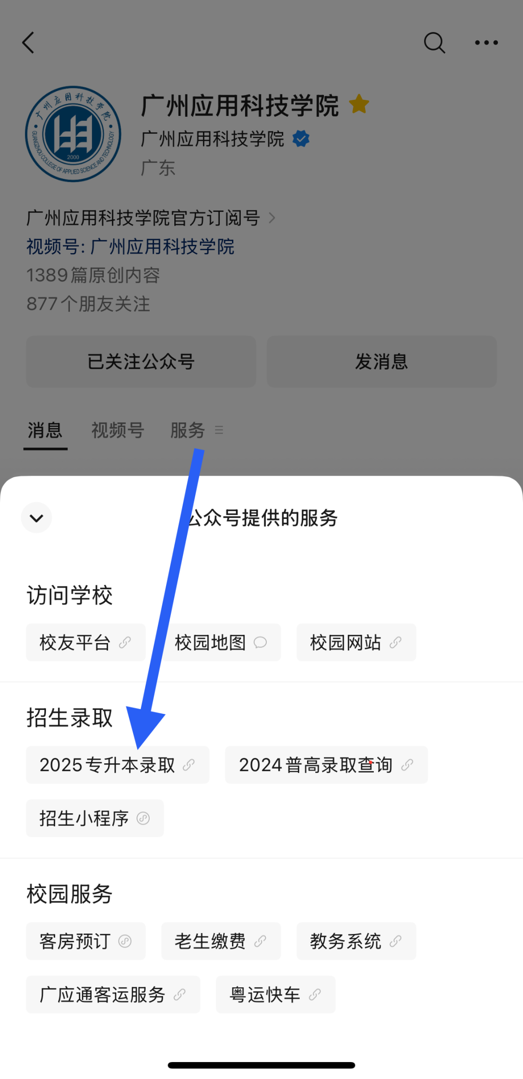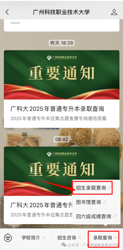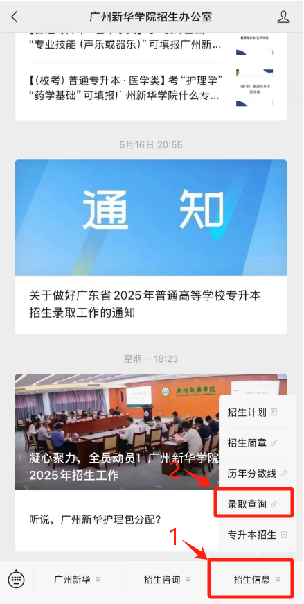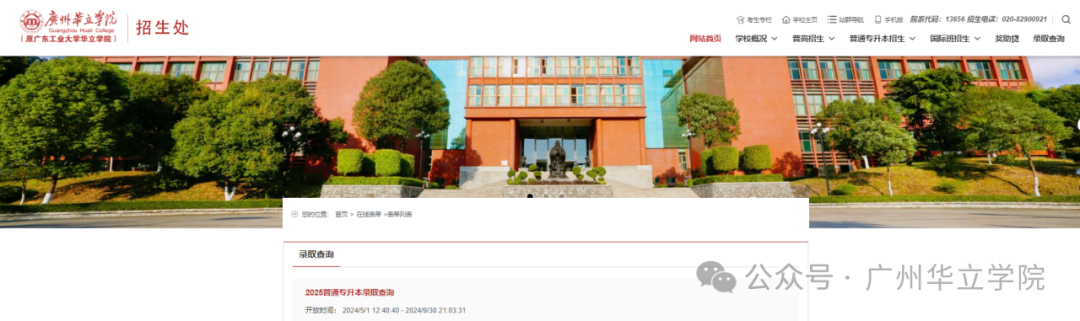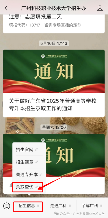 关注“广州应用科技学院”微信公众号—服务—2025专升本录取