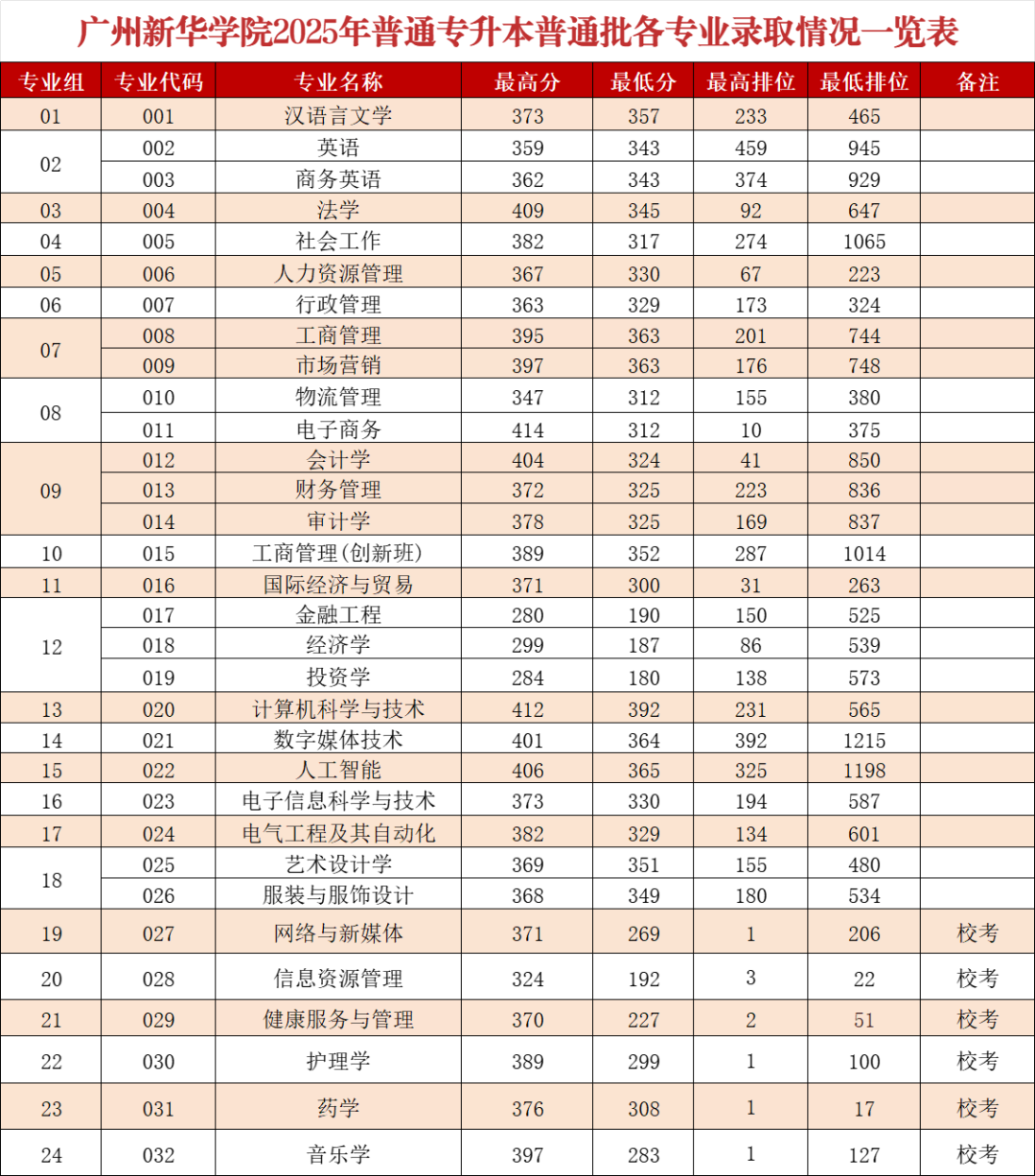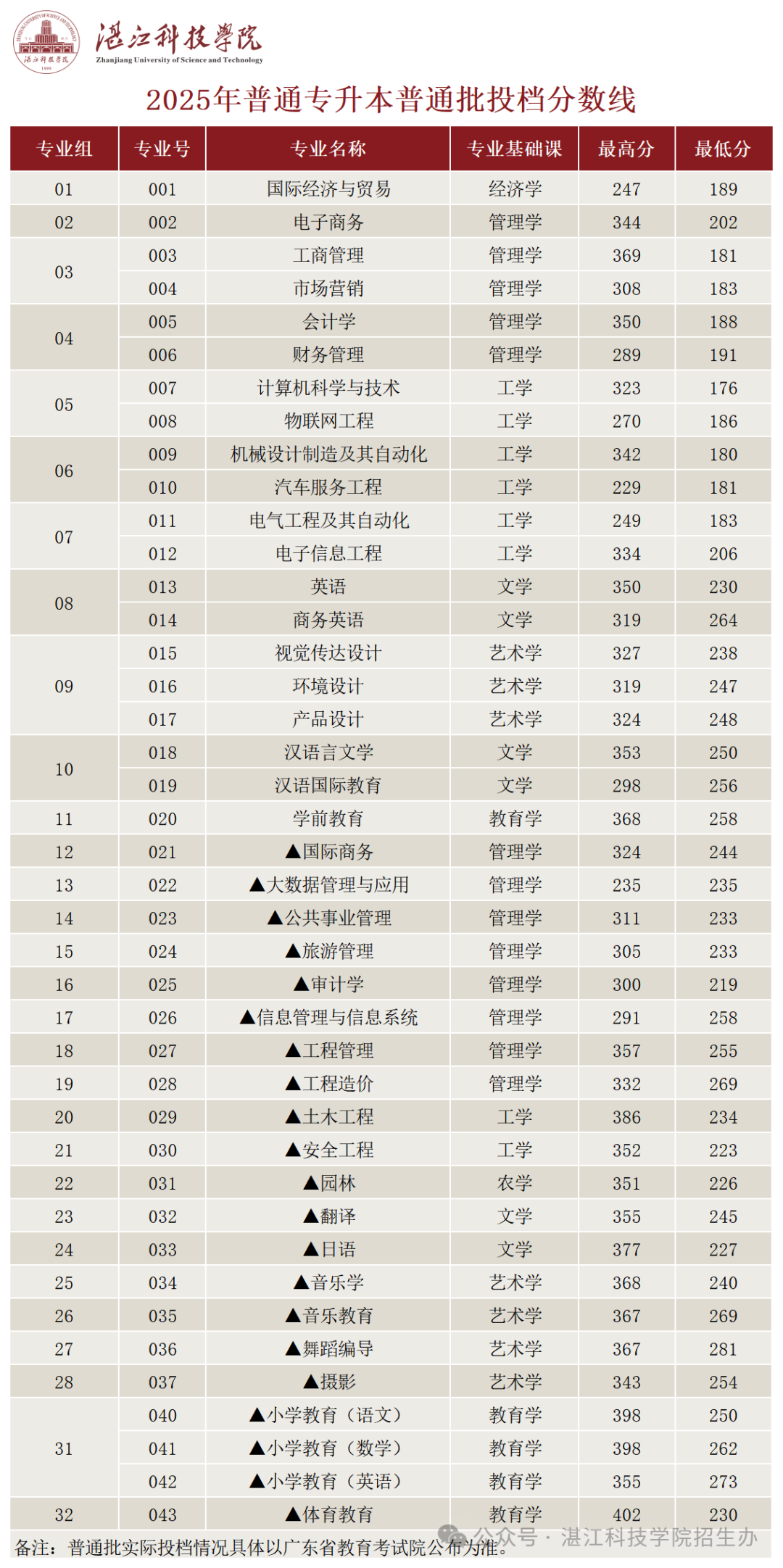 2025年5月22日,广东省2025年普通高等学校专升本普通批正式投档,我校2025年普通专升本招生录取成绩喜人,绝大部分专业组一次满档,投档分远超省控线!