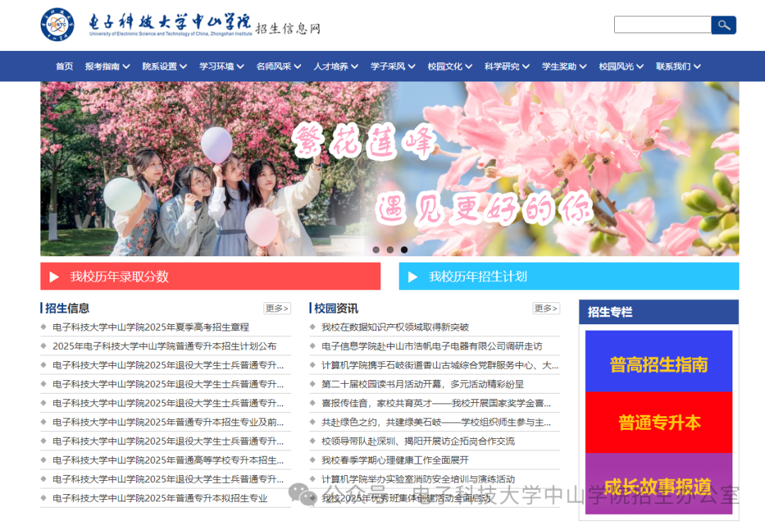 操作方法:登录电子科技大学中山学院招生信息网: