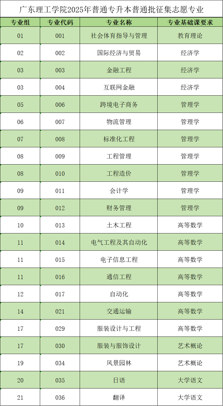 2025年普通专升本普通批征集志愿专业