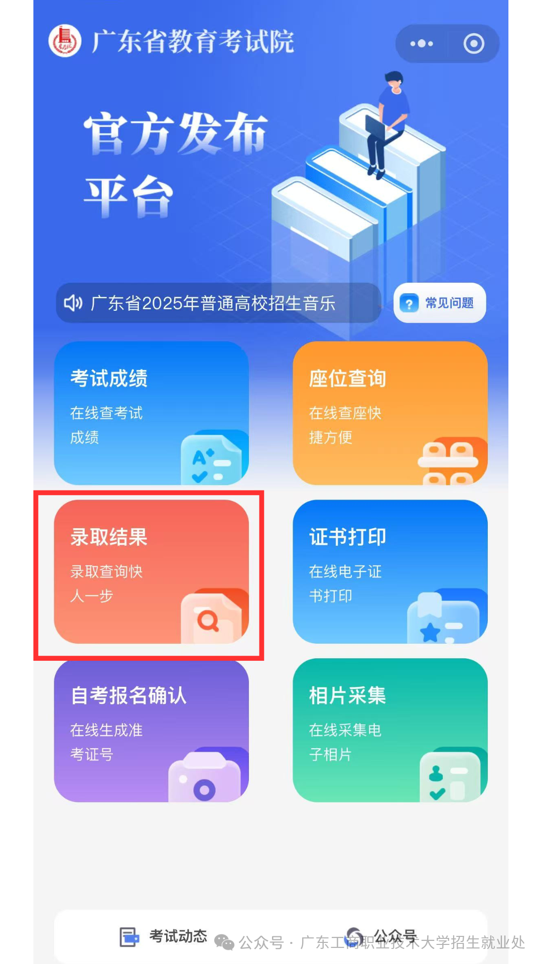 “广东省教育考试院”微信小程序查询"
