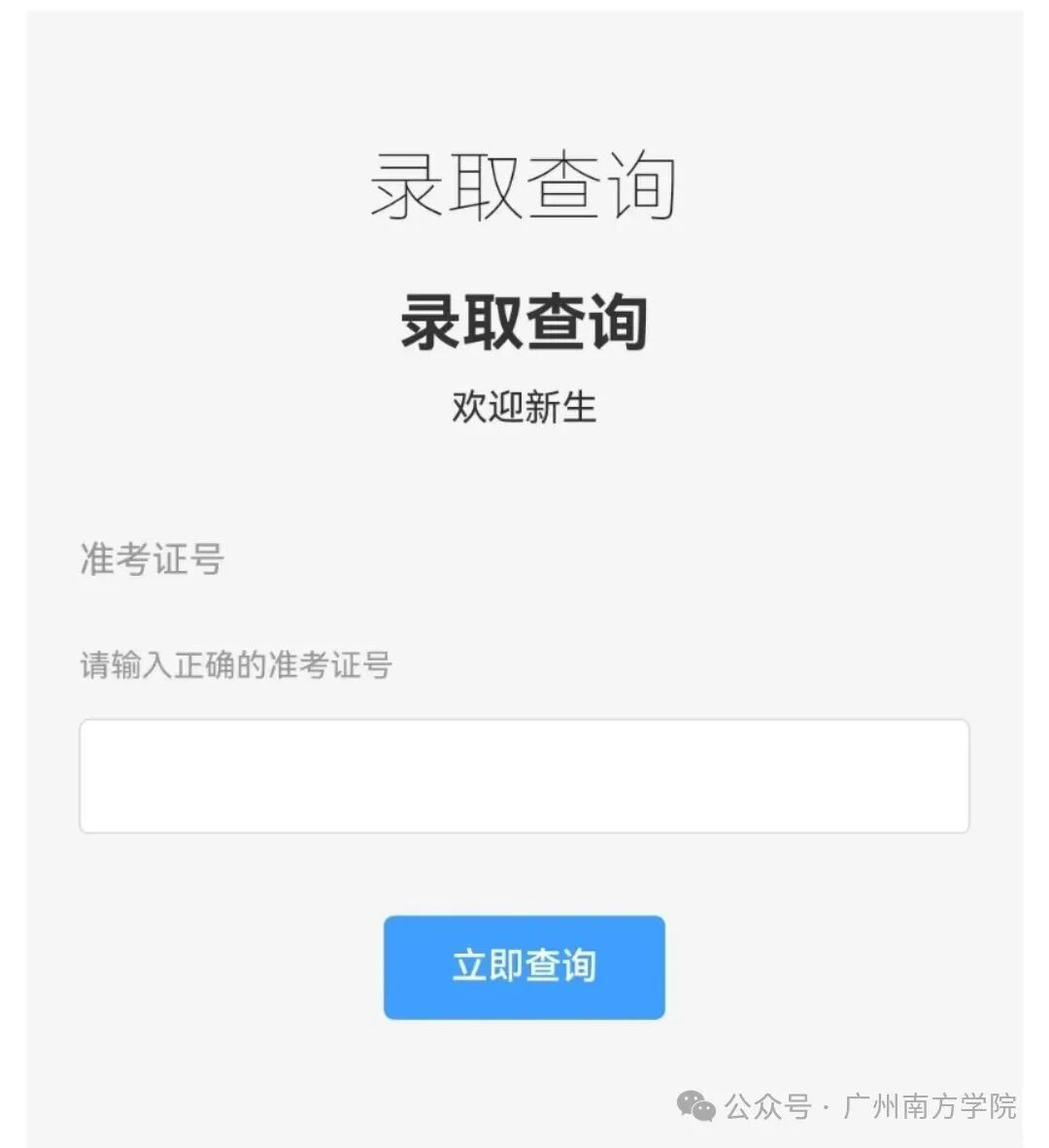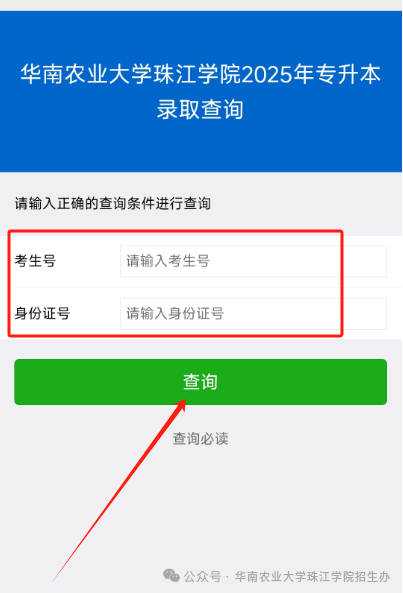 方法二:进入广州南方学院招生网https://zsb.nfu.edu.cn/lqcx.htm,输入准考证号即可查询录取结果。