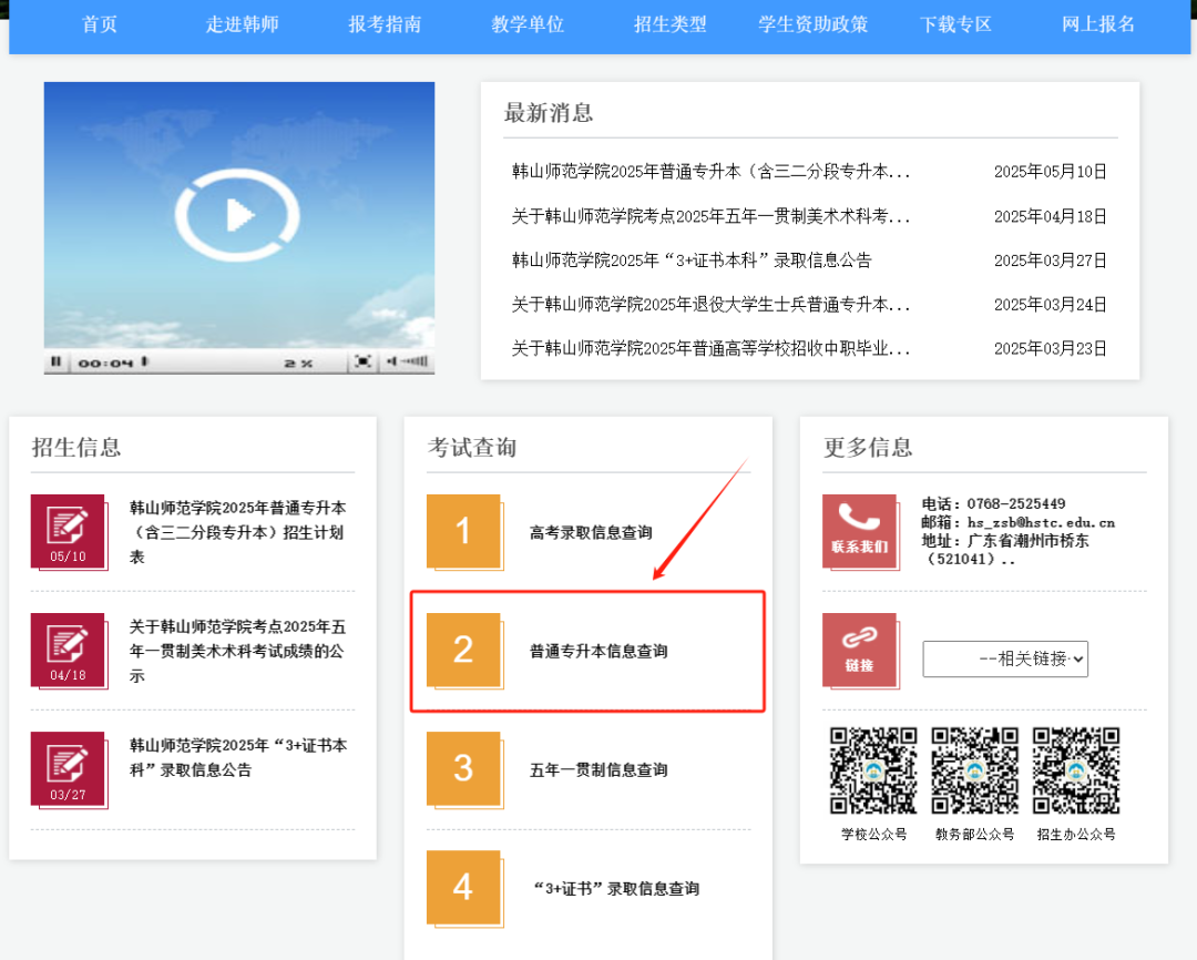 我校2025年普通专升本录取结果可在我校招生信息网、招生办公室微信公众号及招生小程序查询。