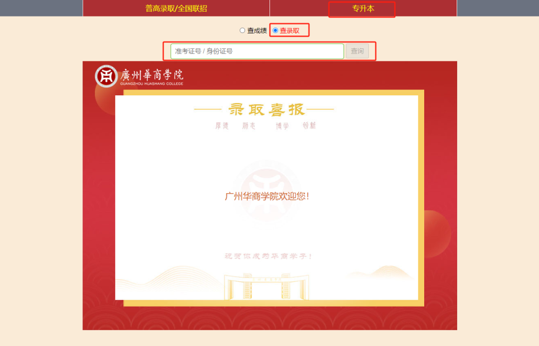 录取结果查询通道