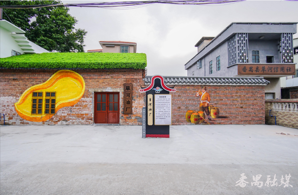 值得一提的是,草河村粮仓文化馆周边的农村信用社、油厂、卫生站等旧建筑也一同被修复,它们如同散落的记忆碎片,被重新拼凑起来,成片连片地留住了乡愁。在昔日的旧粮仓、油厂、农村信用社等老建筑外墙,鲜艳的色彩被赋予丰富文化内涵,与草河粮仓博物馆遥相呼应,摇身一变成为美丽乡村的一道亮丽风景线。