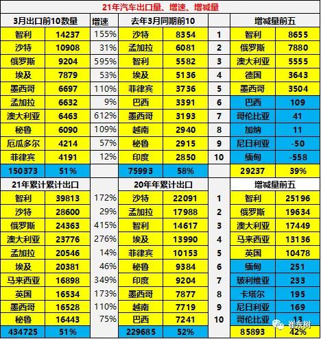 今年中国汽车出口主要依靠智利、沙特和澳大利亚等市场,此外俄罗斯、瑞典以及澳大利亚市场表现同样较强,甚至比利时市场也成为一季度增量的核心。从绝对数量上看,一季度增量相对较多的是欧洲、英国、俄罗斯、挪威等市场。