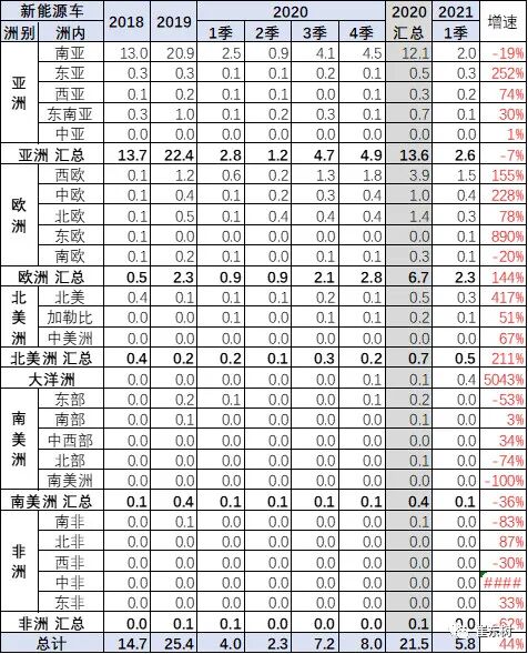 新能源车方面,中国出口的主要增量是欧洲和南亚市场,其中欧洲市场新能源增量1.5万辆,西欧、北欧、中欧等市场表现较强。
