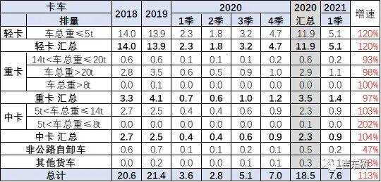 数据显示,近年来货车出口占比处于持续萎缩状态,从2017年的21%下降到2019年的18%,2021年回升至18.5%。崔东树分析,货车市场主力是5吨以下车型,20吨以上重卡货车总体来看也有一定需求,但近期没有明显增长。未来海外“一带一路”建设会推动中国货车的出口。