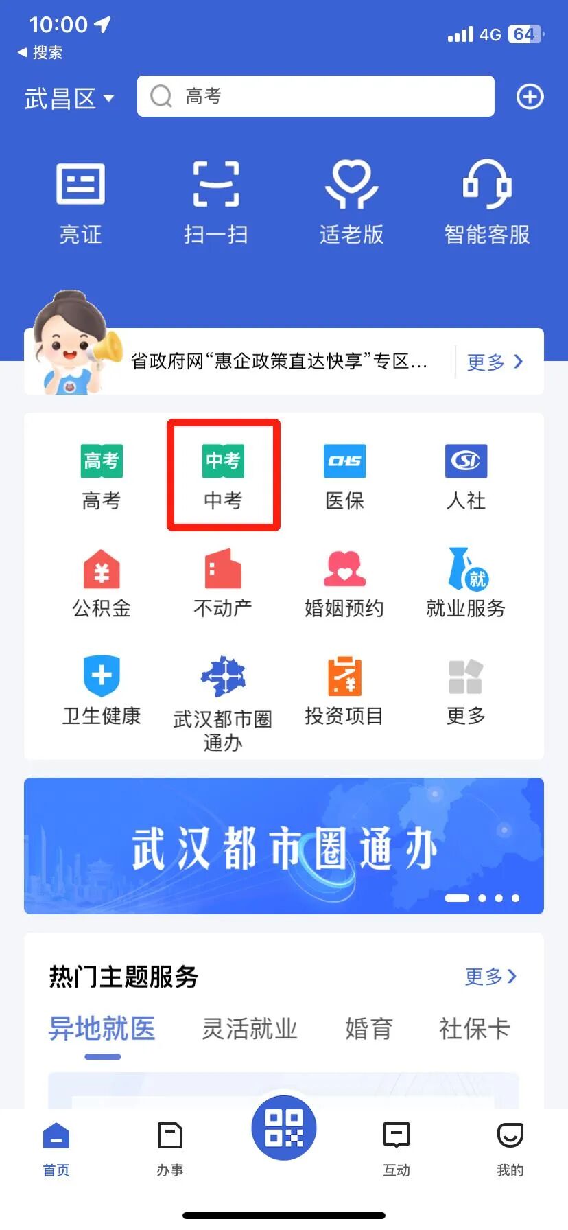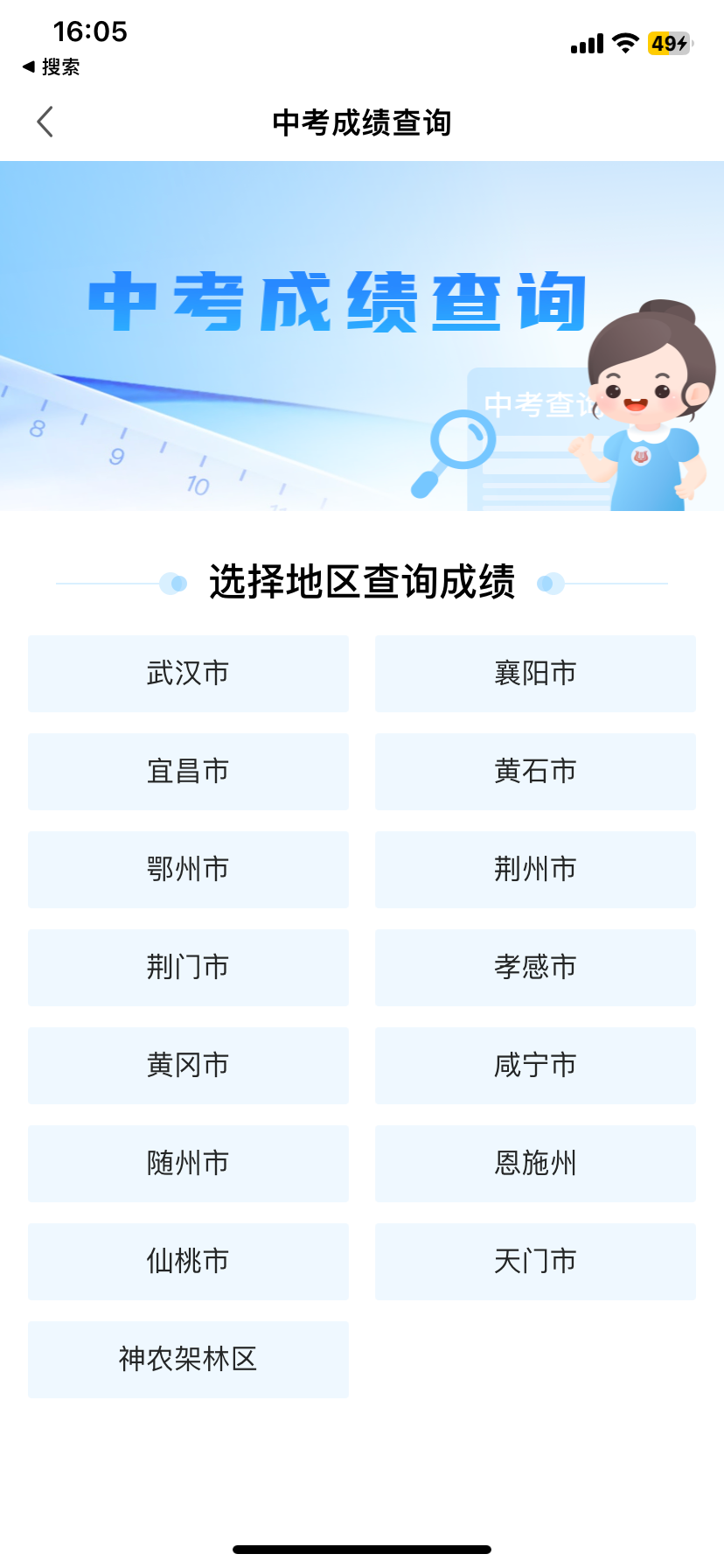 3.选择考生所属城市(部分市州中考成绩查询服务暂未上线)
