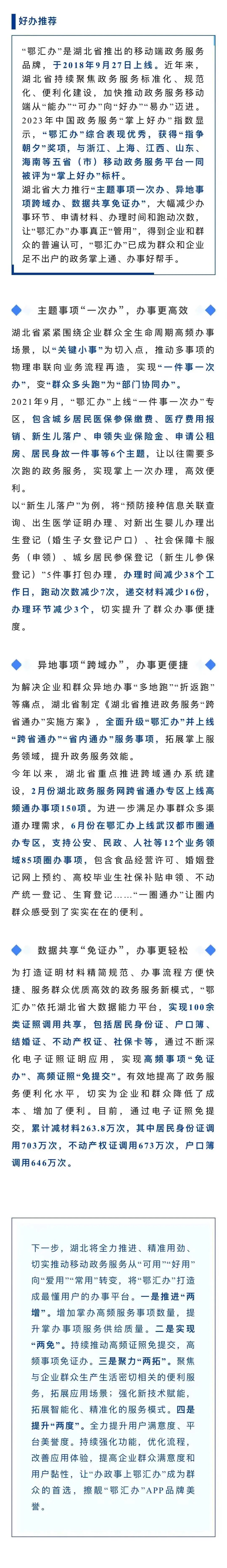 深入推进“一次办、跨域办、免证办”,让“鄂汇办”更贴心好用