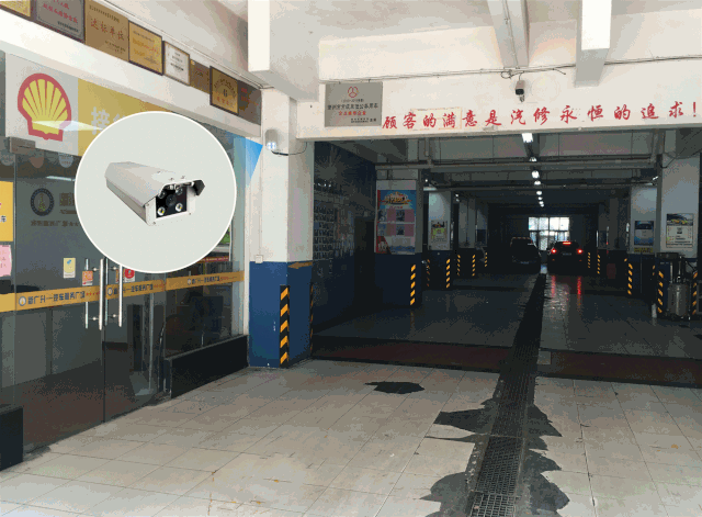 智能接车——车辆进场,车牌摄像机准确捕捉车牌号,实时识别车辆信息(主动完善车辆档案)、新客户和会员客户;并通过大屏端实时语音播报。