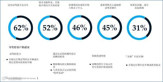(二手车在线购物的5大障碍占受访者的百分比以及给客户的零售建议)