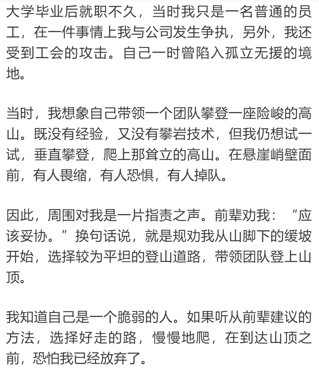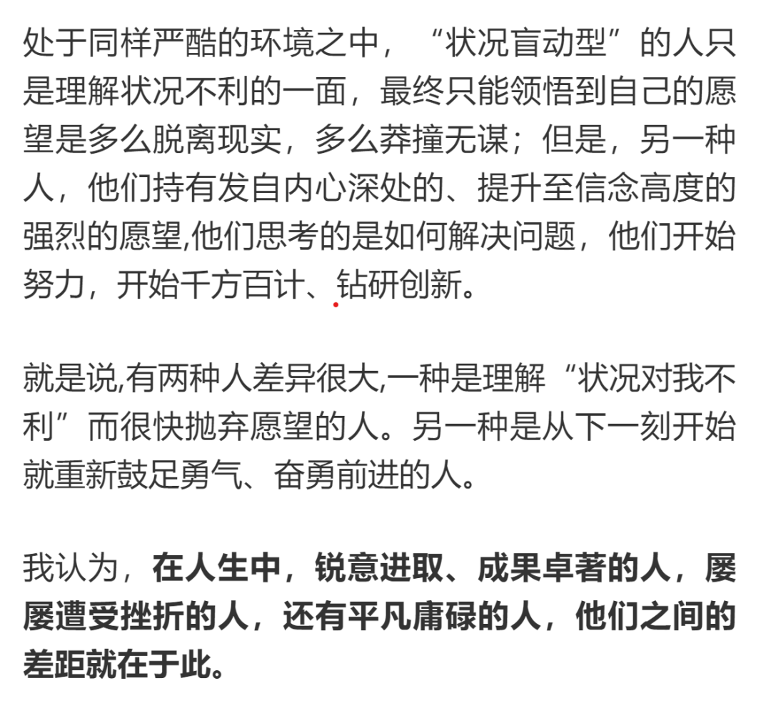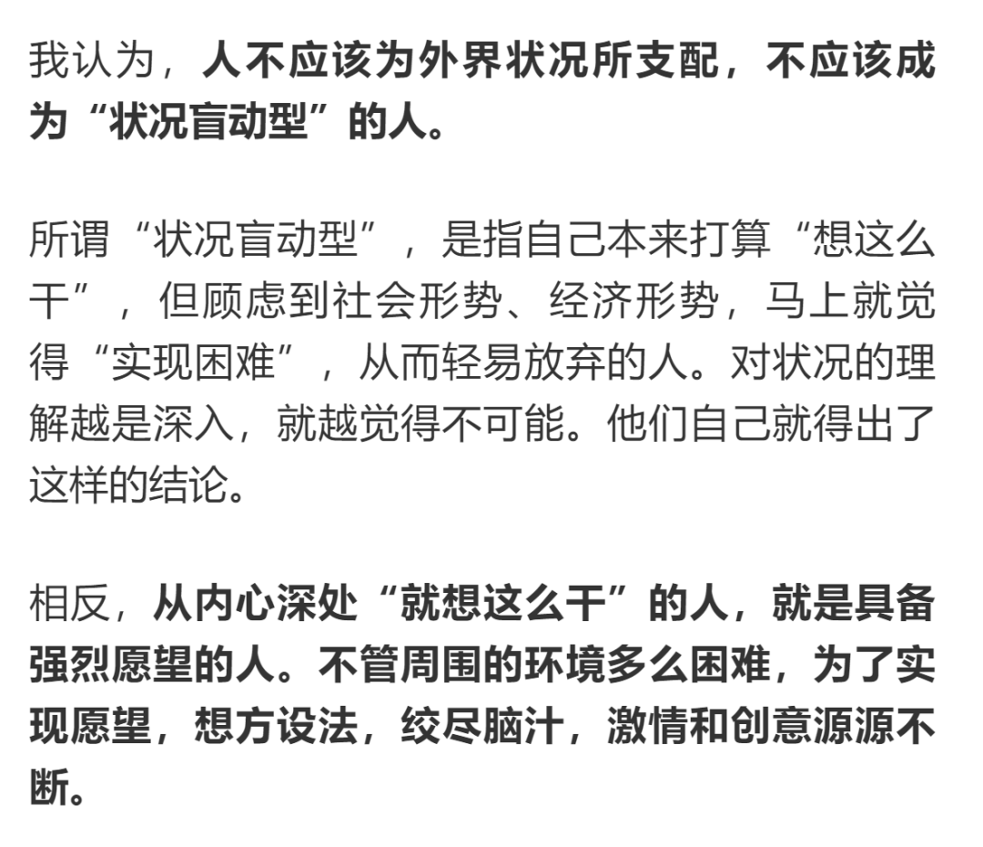 ”他的言外之意是:对于理想而言,“虽然想干,但现实很难。”只要心中有这种消极的念头,就无法实现目标。