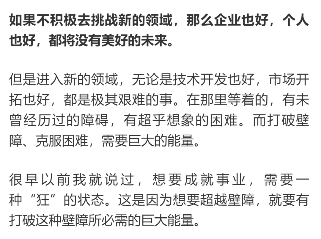 所谓“狂”,就是指充满这类强大能量的那种状态。人本来就有这种能量,这种能量的迸发,是在新的领域获取成功的根本保证。