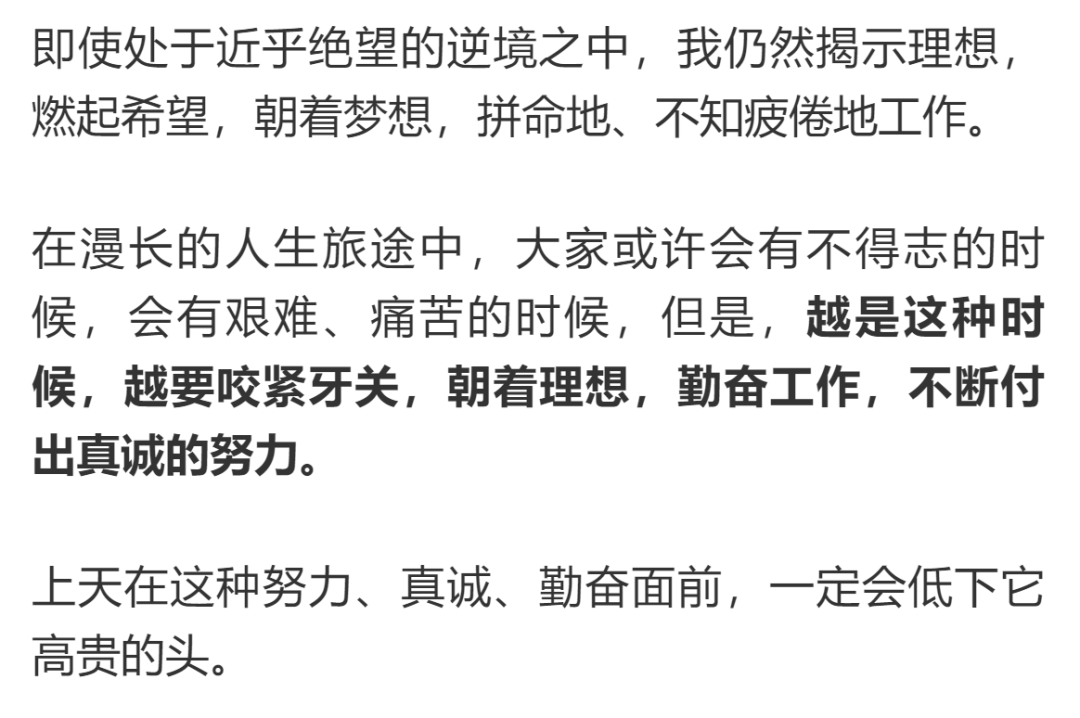 看起来难以做到的事情,必须韧性十足,坚持再坚持,直至成功。