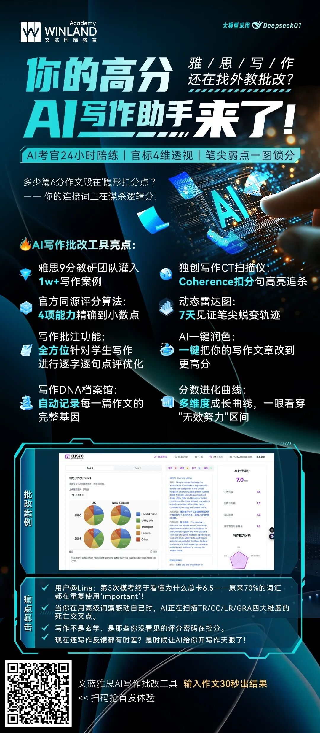 这不是普通的批改工具,它是基于超一万篇真实雅思作文+考官评分数据训练出来的,融合了剑桥雅思评分标准和DeepSeek AI模型的算法能力,几乎是把雅思考官请回了家!