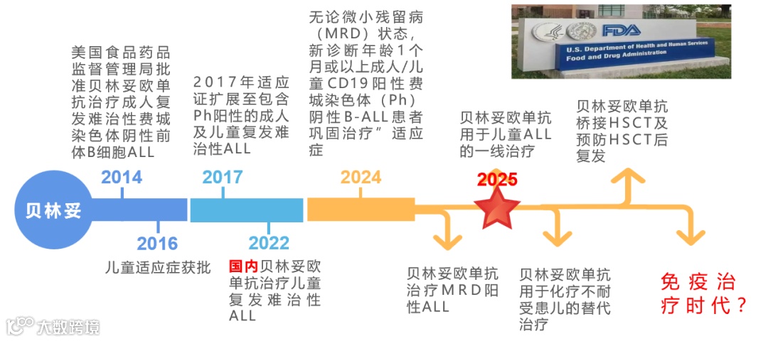 作为靶向CD19和CD3的双特异性免疫治疗药物,通过激活患者体内T细胞来杀灭肿瘤细胞。2022年4月,贝林妥欧单抗适应症扩大到儿童R/R B-ALL患者,成为国内唯一获批用于儿童R/R-B-ALL患者的免疫治疗药物。