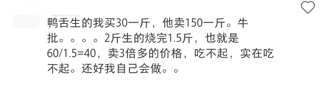 还有网友依据当地物价算了一笔账,卤味售价是平时购买原生肉的3倍价格,逼得年轻人们高举“拒绝卤味刺客”的大旗!