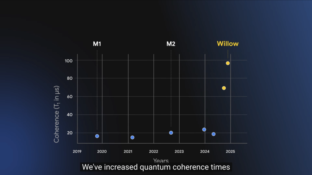 12 月 9 日,谷歌公布了旗下最新、最强大的量子计算芯片 Willow,它拥有史上最多的 105 个量子比特。更重要的是,在量子比特增加之后,Willow 在错误率的控制取得了突破性进展。