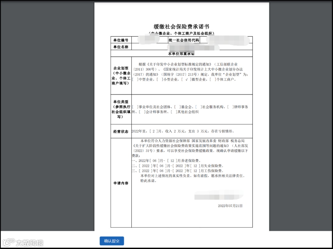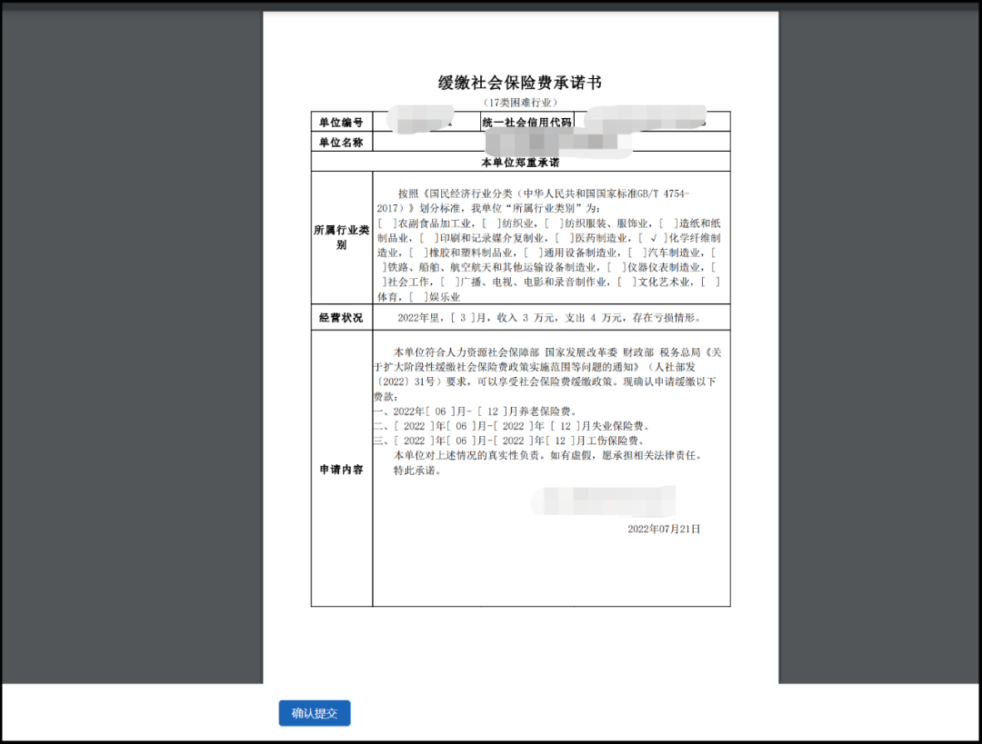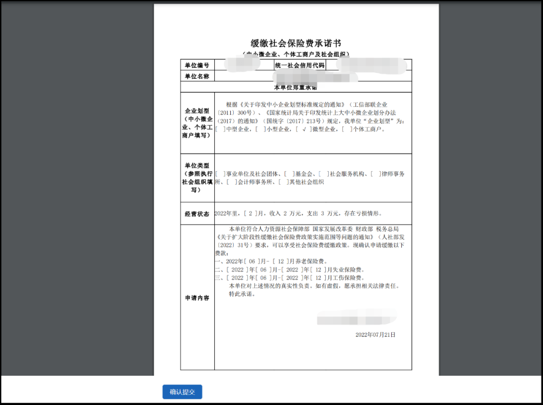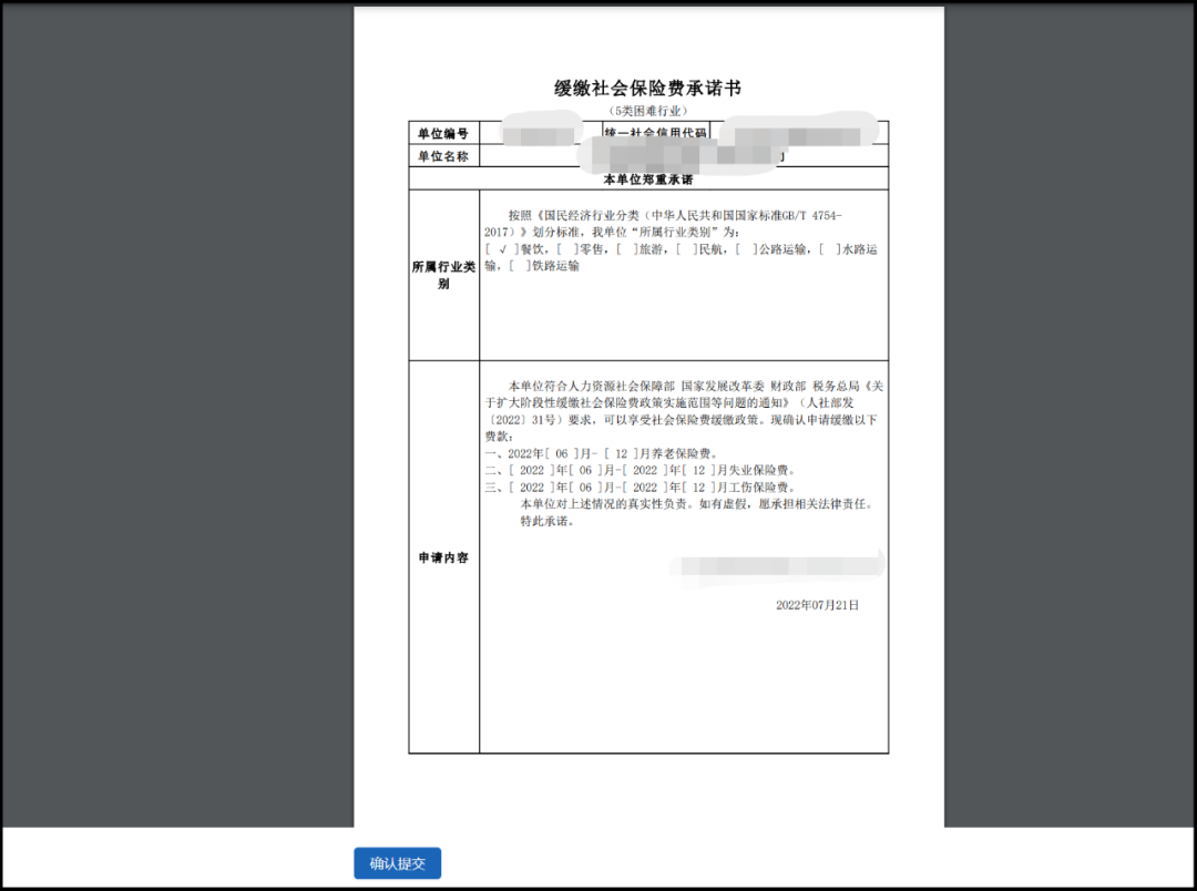 (8)核对承诺书内容,确认无误后,点击“确认提交”。