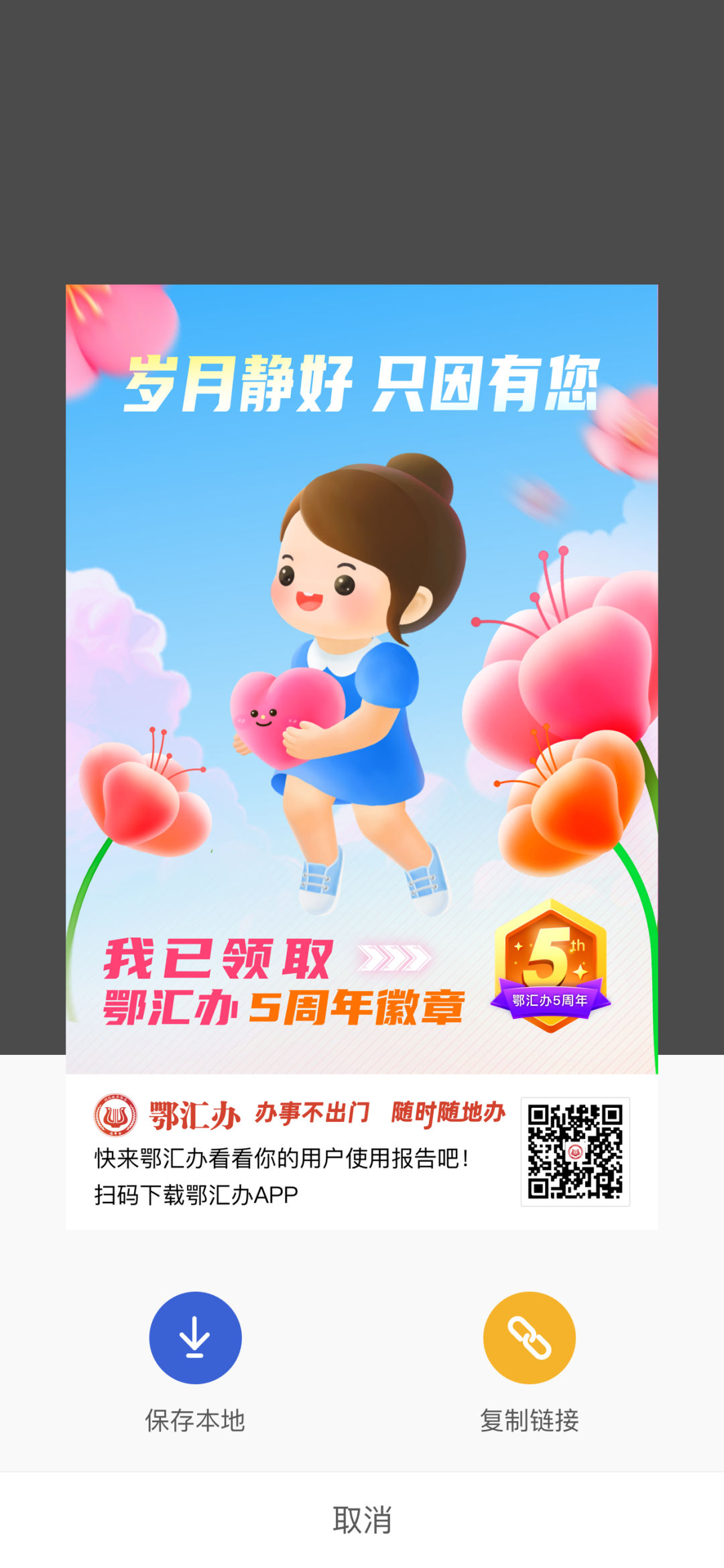 想要晒出您的“鄂汇办5周年勋章”?前往“我的”-“我的勋章”页面,“晒出荣耀”即可