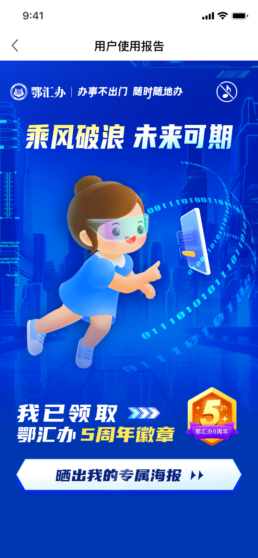 打开并登录鄂汇办APP,在首页点击“用户使用报告”即可解锁您的专属使用报告
