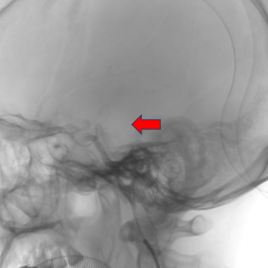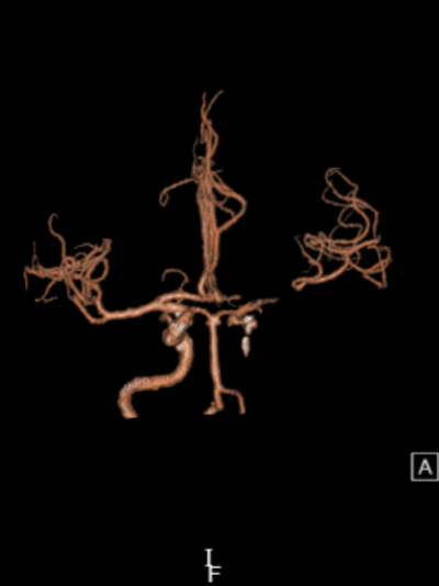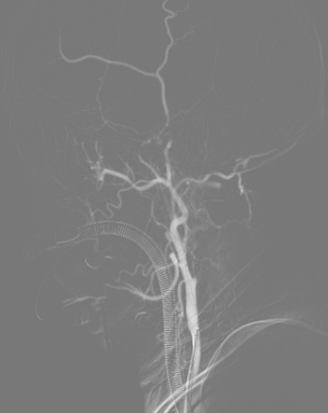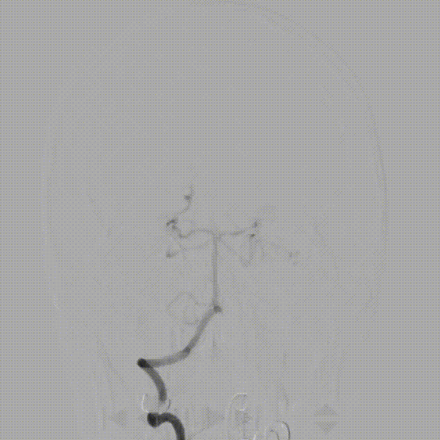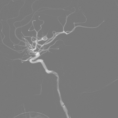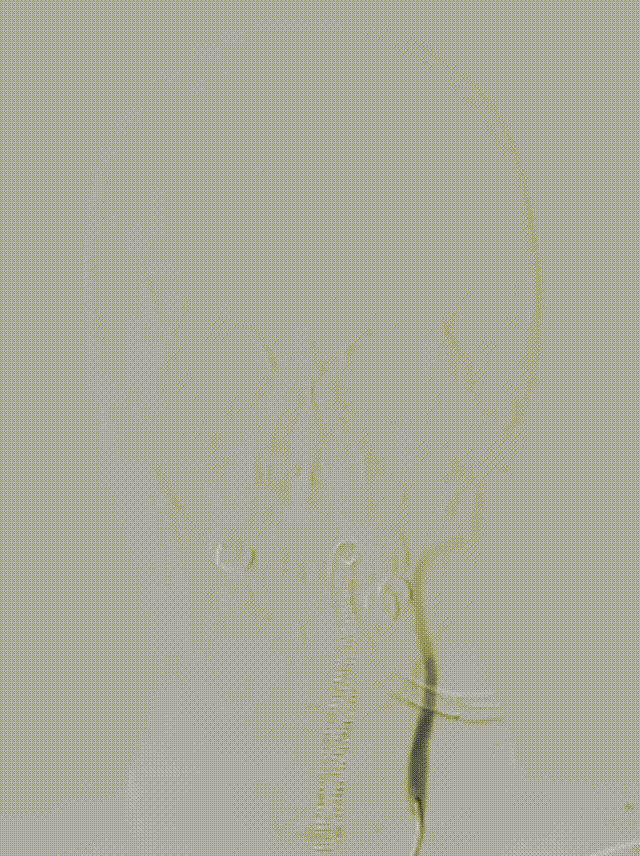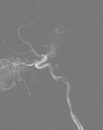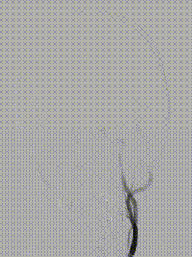 术后造影:可见左侧颈内动脉通畅,大脑前动脉不显影,因患者前交通动脉开放,未处理。