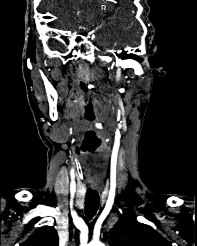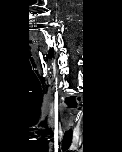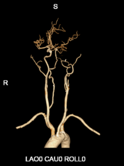 现病史:半小时前无明显诱因出现右侧肢体乏力,表现为右侧上肢不能抬起,下肢不可行走,伴有言语不清,无恶心、呕吐,无肢体抽搐,无大小便失禁等症状。急诊救于我院,行头颅CT提示左侧基底节区脑梗死可能,行头颈部CTA提示左侧颈内动脉闭塞。急诊以“急性脑梗死”入院。发病来,神志嗜睡,精神差,未进食水,小便正常,大便未解。